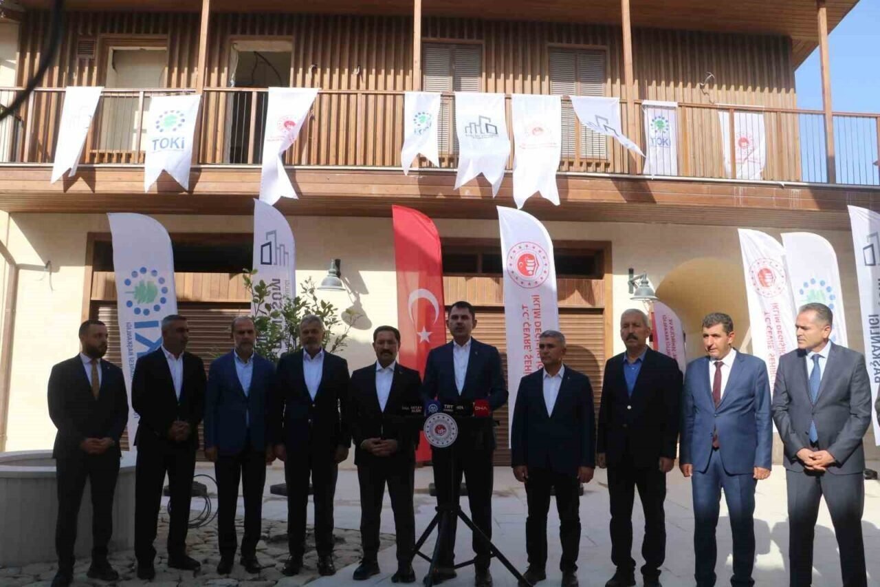 Asrın felaketinin, asrın inşa seferberliğine dönüştüğü ifade eden bakan Kurum, Kasım ayı içerisinde 350 bininci konutun anahtarını Cumhurbaşkanı Recep Tayyip Erdoğan’ın katılımıyla hak sahibi vatandaşa teslim edileceğini belirterek “Devlet-millet el ele vererek, Asrın Felaketini Asrın İnşa Seferberliğine dönüştürdük. Bugün depremden etkilen 11 ilimizde 7 gün 24 saat alın teri döken 200 bin mühendis, mimar ve işçi kardeşimizle birlikte, depremzede kardeşlerimizi bir an önce yuvalarına kavuşturmanın gayreti içindeyiz. Geçtiğimiz ay Malatya’da Sayın Cumhurbaşkanımızın teşrifleriyle 304 bininci yuvamızın anahtarlarını hak sahibi kardeşlerimize teslim ettik. Söz verdiğimiz 453 bin yuvanın, yüzde 70’ini tamamladık. Yani şu anda; her 3 depremzede kardeşimizden 2’sini yeni yuvasına kavuşturduk. Önümüzdeki ay 350 bininci konutumuzun anahtarlarını yine Cumhurbaşkanımızla birlikte teslim edeceğiz. inşallah yılsonuna geldiğimizde burada olacağız, son anahtarlarımızı da vatandaşlarımızla buluşturacağız. Biz milletimize ne söz verdiysek, fazlasıyla yerine getirmek için gece gündüz durmaksızın ilerliyor, milletimizin dualarına nail olabilmek için var gücümüzle azimle, kararlılıkla çalışıyoruz. Bugün geldiğimiz noktada Hatay’ımızda 86 bin konut ve iş yerimizi tamamladık ve hak sahibi kardeşlerimize teslim ettik. Şu anda şehrimizde 66 binin üzerinde konut, iş yeri ve köy evinin inşaatına süratle devam ediyoruz. Söz verdiğimiz gibi bu yılın sonuna kadar Hatay’ımız da 153 bin bağımsız bölümü teslim edeceğiz. Deprem bölgesinin tamamın da ise 453 bin yuvamızı tamlayarak hak sahibi kardeşlerimizi güvenli ve huzurlu yuvalarına kavuşturacağız” ifadelerini kullandı.