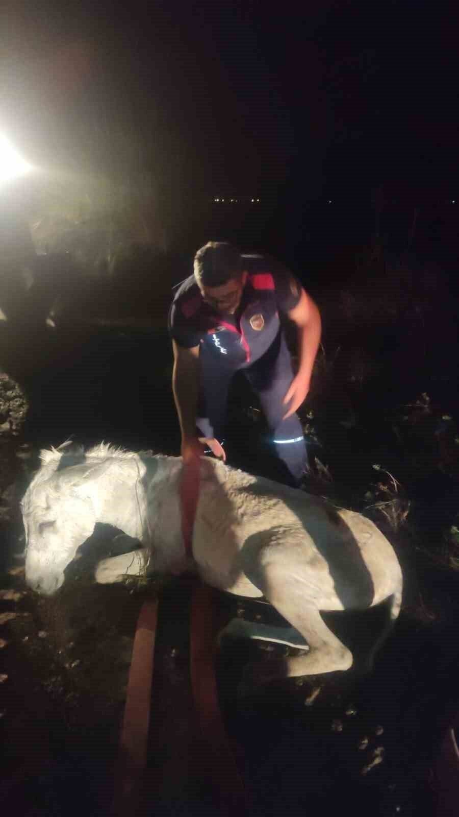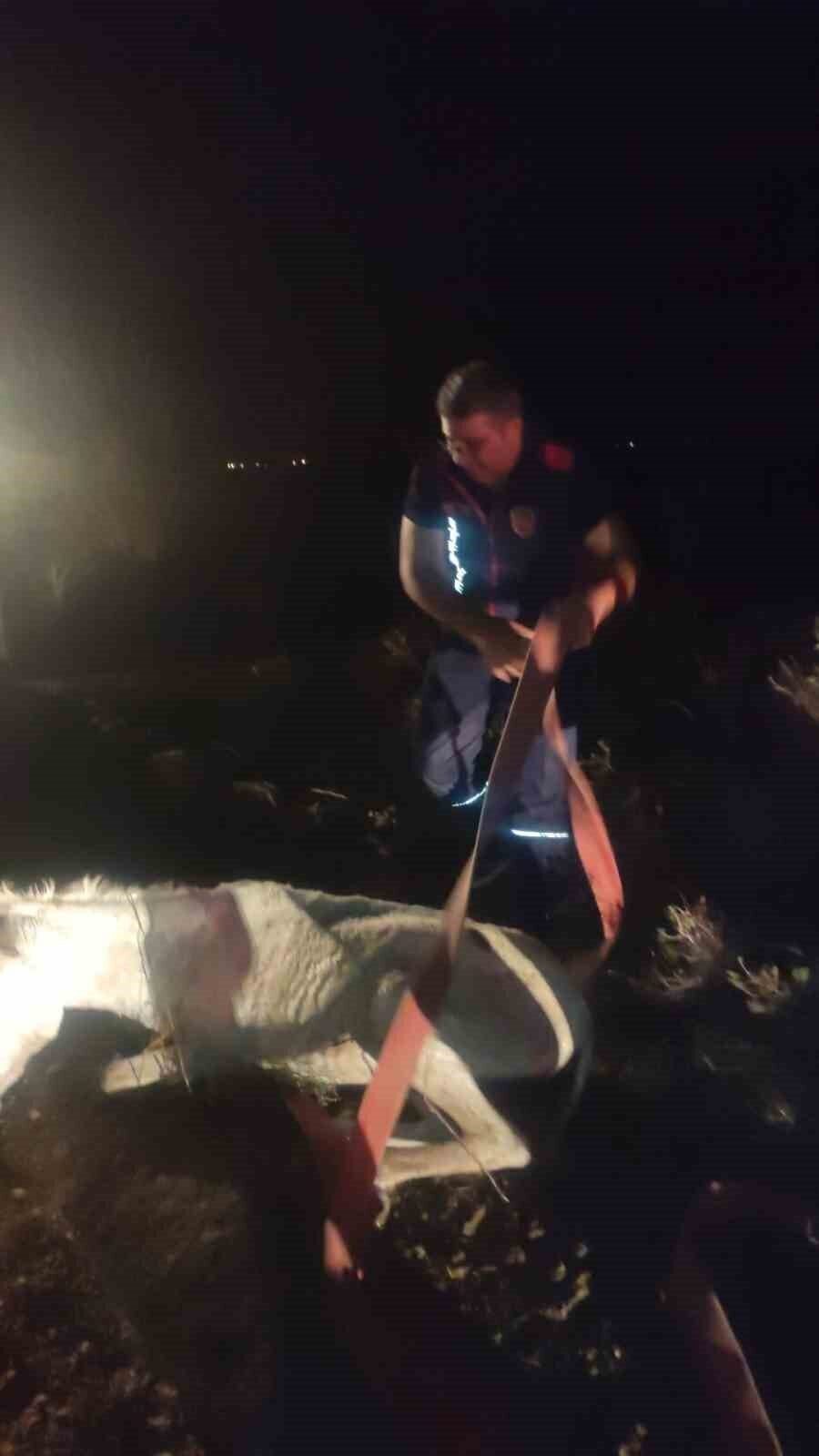 HATAY’DA DERE YATAĞINDA BALÇIĞA SAPLANAN EŞEK, İTFAİYE EKİPLERİ TARAFINDAN VİNÇ YARDIMIYLA KURTARILARAK SAHİBİNE TESLİM EDİLDİ.