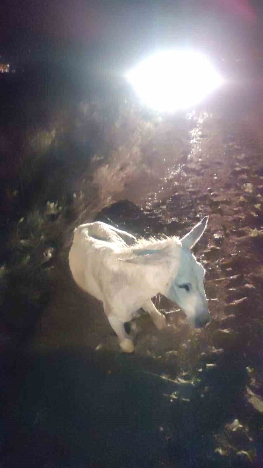 Hatay’da dere yatağında balçığa saplanan eşek, vinç yardımıyla kurtarılarak sahibine teslim edildi.