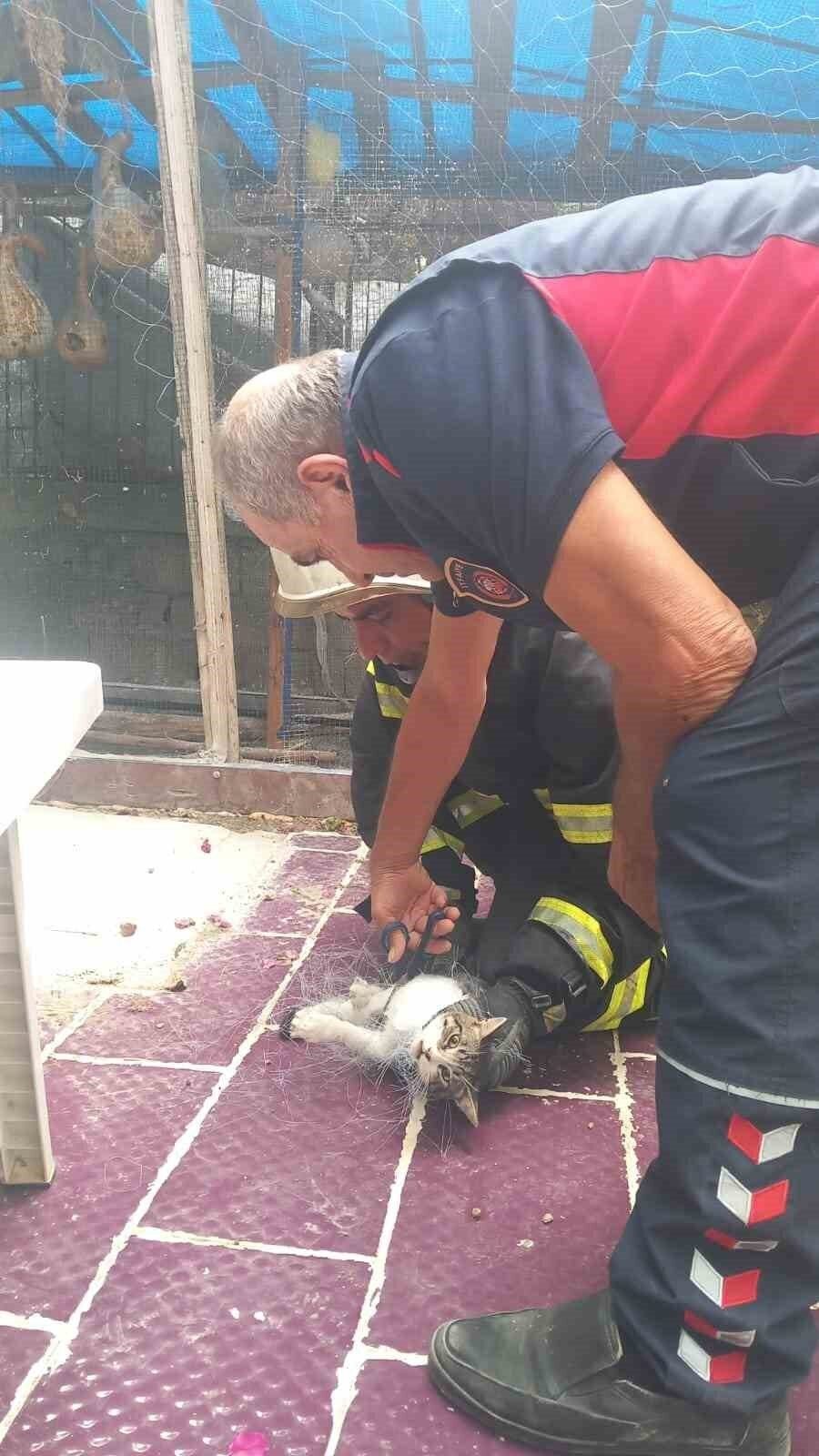 Balık ağına takılan kediyi itfaiye kurtardı