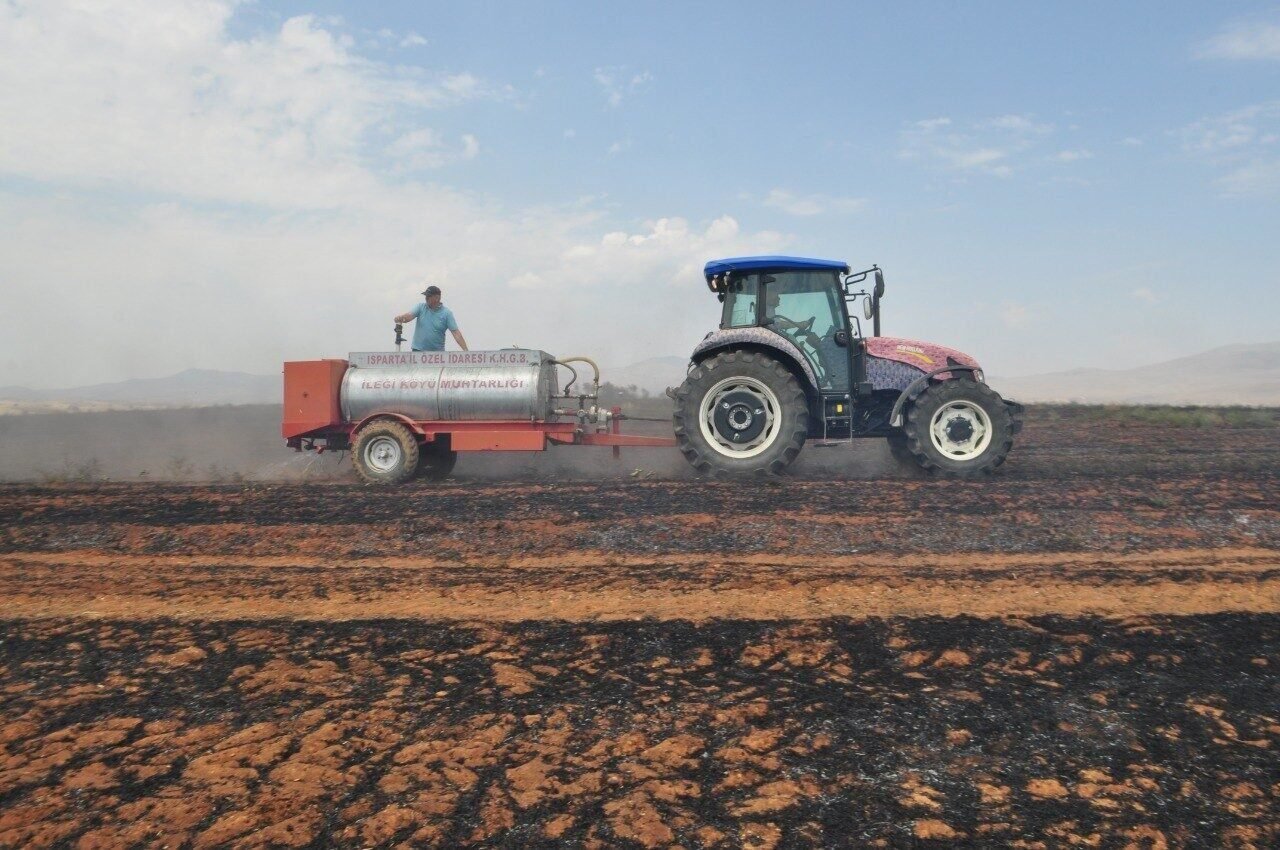 Yangını fark eden vatandaşlar durumu itfaiye ekiplerine bildirdi. İhbarın ardından harekete geçen İlegi köyünün genç gönüllülerinden Bahri Sarıpınar ve köy yangın ekibi, camiden yapılan anonsla halkı uyardı. Köy yangın söndürme tankeri ve traktörlere bağlı pulluklarla yangın bölgesine giden ekipler, alevlerin yayılmasını önlemek için tarlanın çevresini sürerek yangını kontrol altına aldı. Söndürme çalışmalarına Sücüllü köyü sakinleri de destek verdi. Yalvaç Belediyesi ekipleri tarafından yangın alanında soğutma çalışmaları yapıldı. Yaklaşık 100 dönümlük alanın zarar gördüğü yangınla ilgili jandarma ekipleri inceleme başlattı.