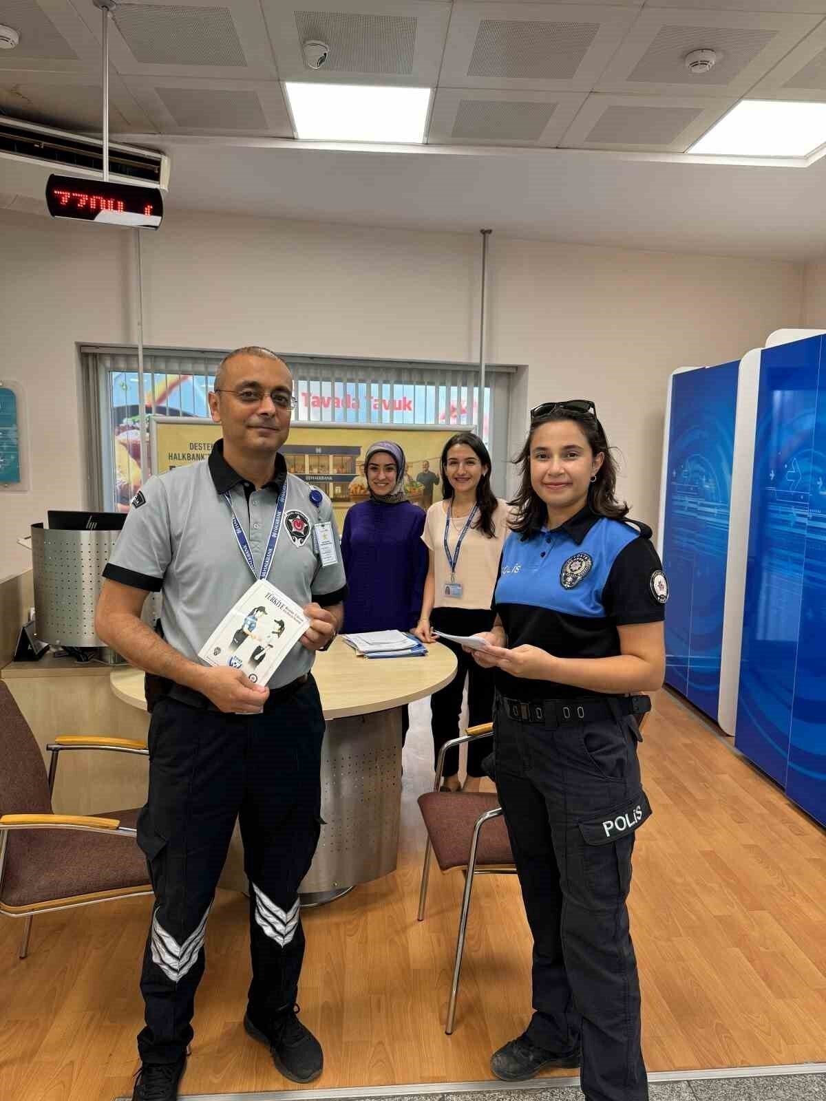 Son dönemde artış gösteren dolandırıcılık olaylarına dikkat çekilen bilgilendirmede, özellikle bankaya telefonla konuşarak gelen, bankada tedirgin şekilde telefonla görüşen ve yüksek meblağlarda para çekimi veya havale işlemi yapan vatandaşlara karşı daha dikkatli olunması gerektiği vurgulandı.