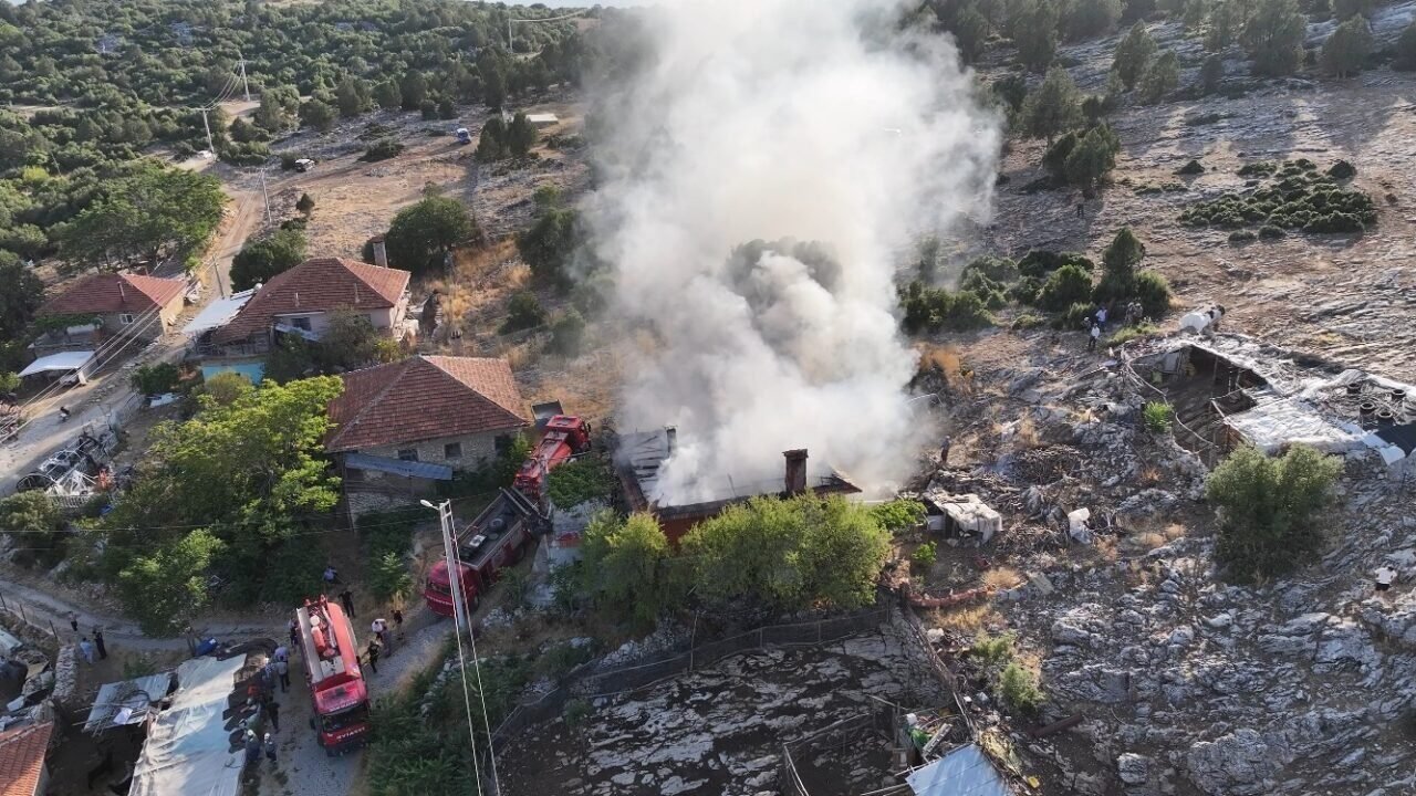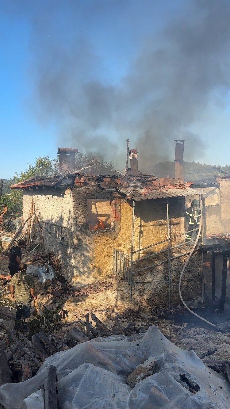 Burdur’un Bucak ilçesinde banyo sobasından çıkan yangında 2 katlı toprak ev tamamen yanarak kullanılamaz hale geldi.