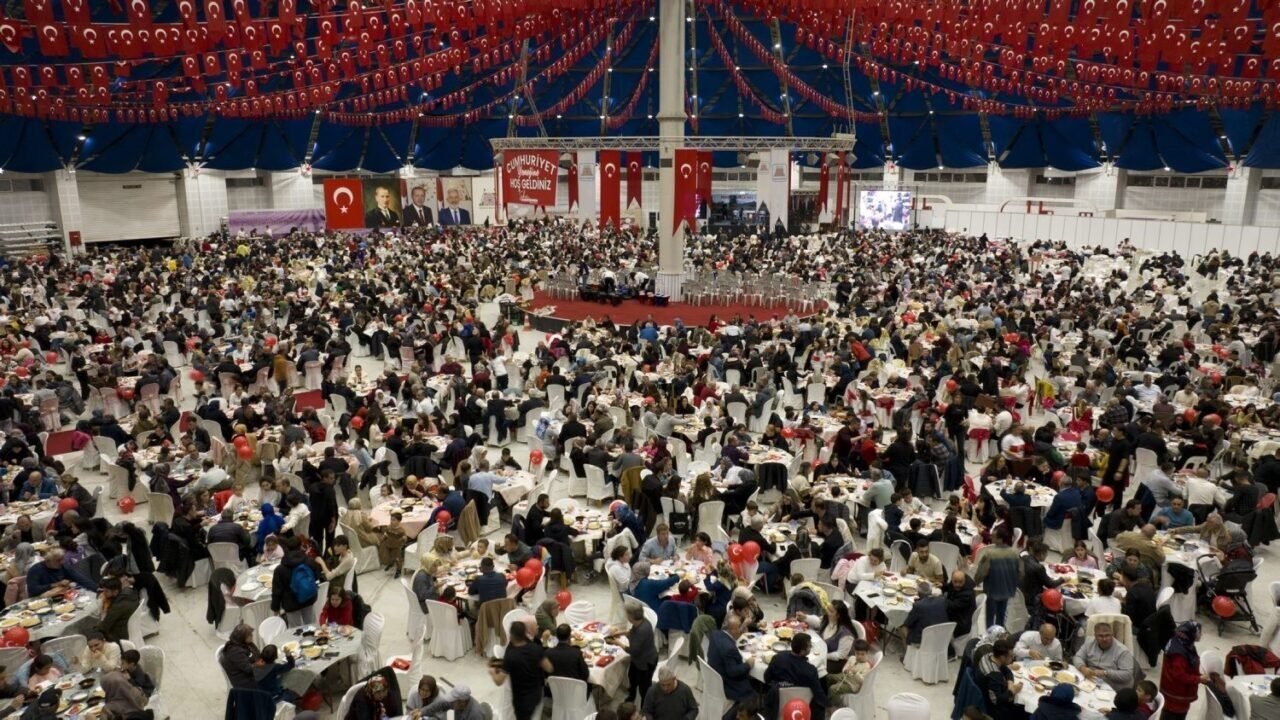 Belediye Başkanı Şükrü Başdeğirmen ve eşi Şadiye Başdeğirmen, Cumhuriyetin 102. yılını belediye personeli ve aileleriyle birlikte kutladı. Başdeğirmen çifti, belediye personeli ve aileleriyle Gökkubbe Fuar ve Kongre Merkezi’nde bir araya geldi. Yemek öncesinde çocuklara yönelik etkinlikler düzenlendi. Etkinliklerde çocuklar gönüllerince eğlendi. Ayrıca cumhuriyetin 102’inci yılı dolayısıyla 102 gönüllü personel darbuka çaldı. Yemeğe personel yoğun ilgi gösterdi. Başdeğirmen çifti, Cumhuriyet Yemeğinde personel ve ailelerini tek tek kapıda karşıladı, çocuklarla yakından ilgilendi.