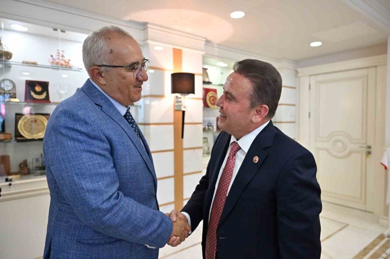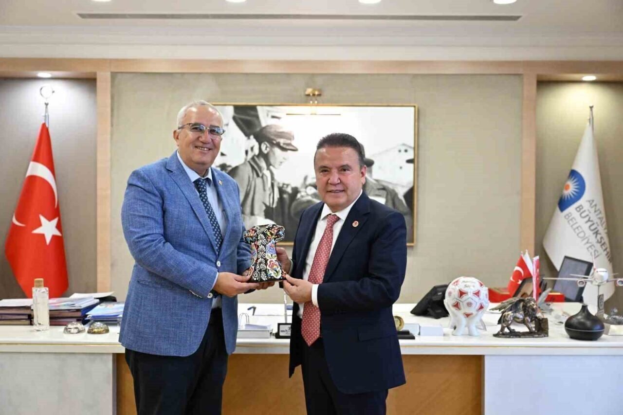 Antalya Büyükşehir Belediye Başkanı ve Cittaslow Türkiye Koordinatörü Muhittin Böcek, “Sakin Şehir” (Cittaslow) ünvanını almaya hak kazanan Denizli’nin Çameli ilçesi Belediye Başkanı Cengiz Arslan’ı kabul etti.