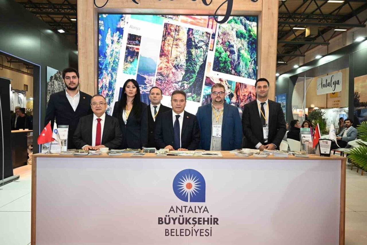 Başkan Böcek, açılışın ardından fuarın en güzel ve göz alıcı stantlarından biri olan Antalya standında ziyaretçilerle bir araya geldi.