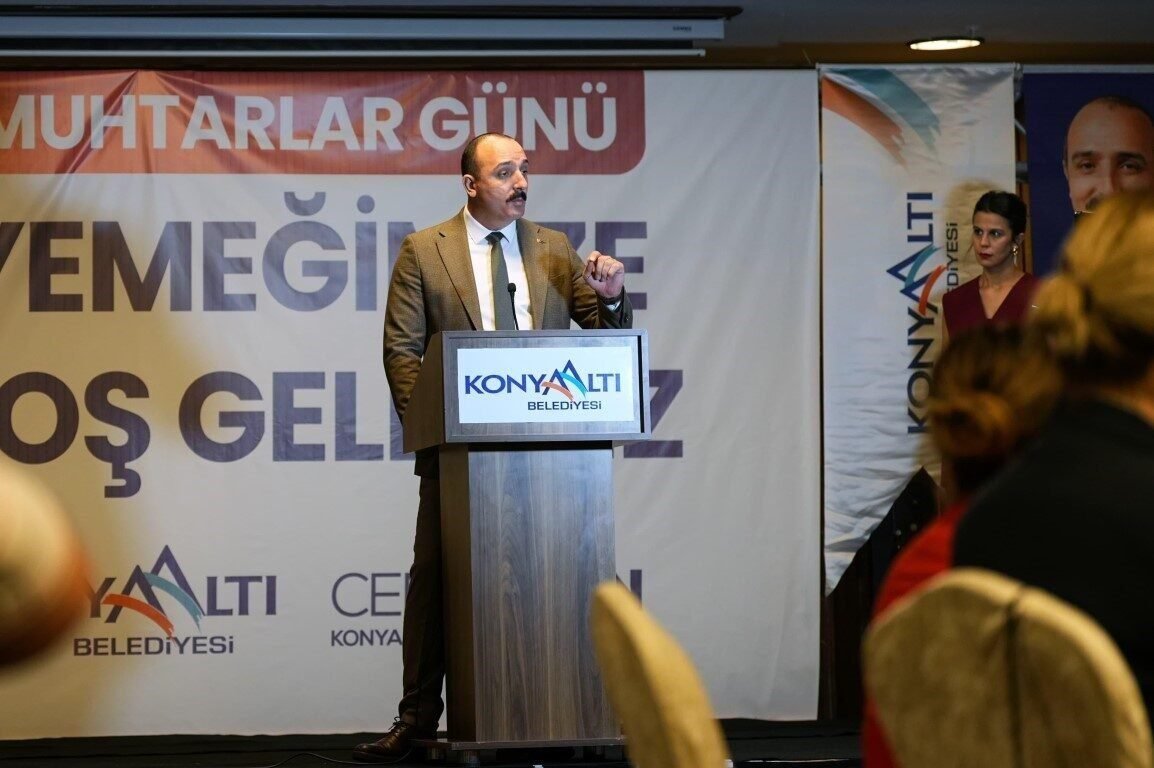 Düzenlenen Muhtarlar Günü Yemeği’nde konuşan Konyaaltı Belediye Başkanı Cem Kotan, “Muhtarlar Meclisi’nde sizlerle birçok konuyu paylaşıyoruz. Hedefimiz, temelde demokrasiyi Konyaaltı’na tamamen yerleştirmek, sizlerin fikirleri ve düşüncesiyle yönetmekti. Bir buçuk yıldır bunu başardığımızı düşünüyorum. Hem üretiyoruz hem de sorunları çözme noktasında birlikte hareket ediyoruz” dedi. Kendisi ve Konyaaltı Belediyesi kurumunun muhtarları daima önemsediğini vurgulayan Başkan Kotan, “Sizlere büyük değer veriyoruz. Sizler demokrasinin mihenk taşlarısınız. Bu yüzden sizlerle yol yürüyoruz. Vatandaşın ulaştığı ilk kişiler sizlersiniz. Bir sorun olduğu zaman sizlerden bilgi alıyoruz. Muhtarlar Günü’nüz kutlu olsun. Hep birlikte Konyaaltı’nı yönetmeye ve istediğimiz seviyeye ulaştırmak için çalışmaya devam edeceğiz” ifadelerini kullandı.