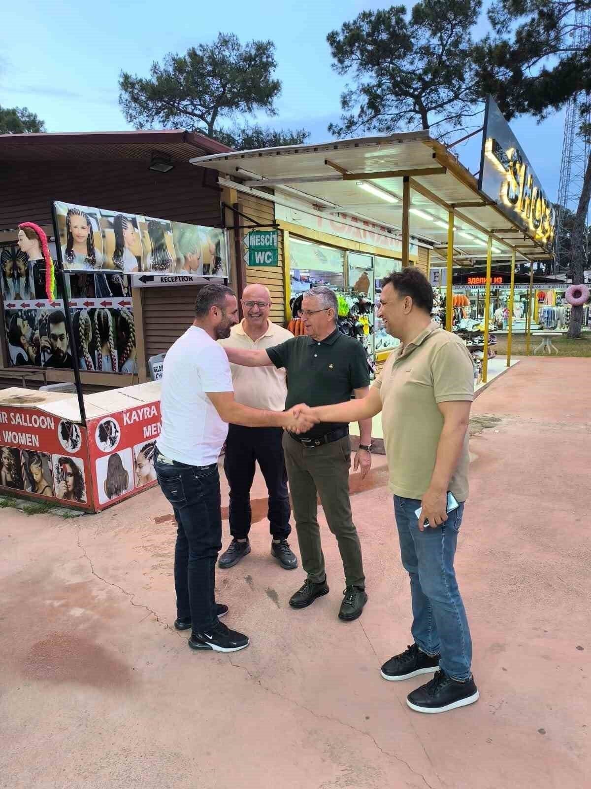 Kemer Belediye Başkanı Necati Topaloğlu, Beldibi Mahallesi’nde Belediye Meclis üyesi Hüseyin Çelik ve Beldibi Mahalle sorumlusu Cumali Akdağ ile birlikte esnafı ziyaret etti.