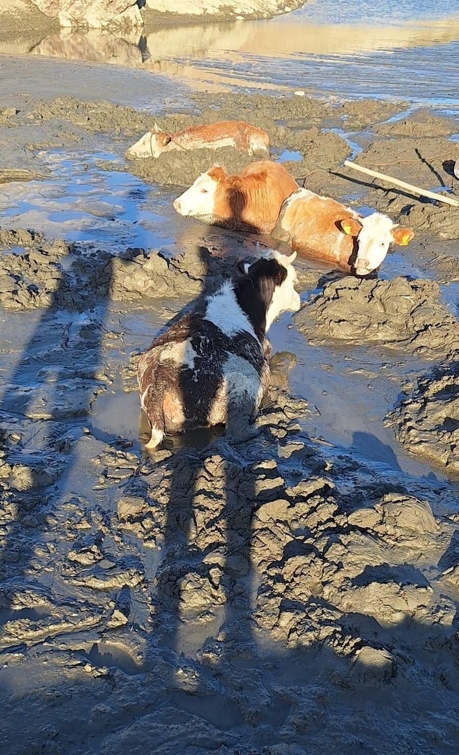 Bataklığa saplanan 6 inek kurtarıldı
