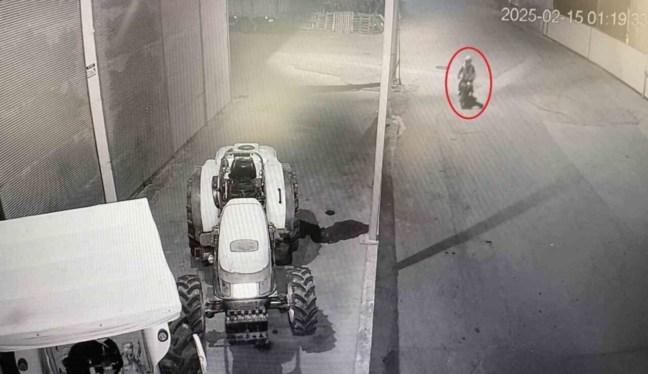 Antalya’da gece saatlerinde motosikletiyle kimliği belirsiz bir kişi park halindeki traktöre benzin döküp ateşe verdi. Bu sırada kendisinin üzerine ve motosikletine dökülen benzin alev aldı. Üzerindeki montu çıkartıp yanmaktan kurtulan şüpheli, motosikletini de bırakıp olay yerinden kaçtı. Olay anı güvenlik kamerası tarafından anbean kaydedildi.