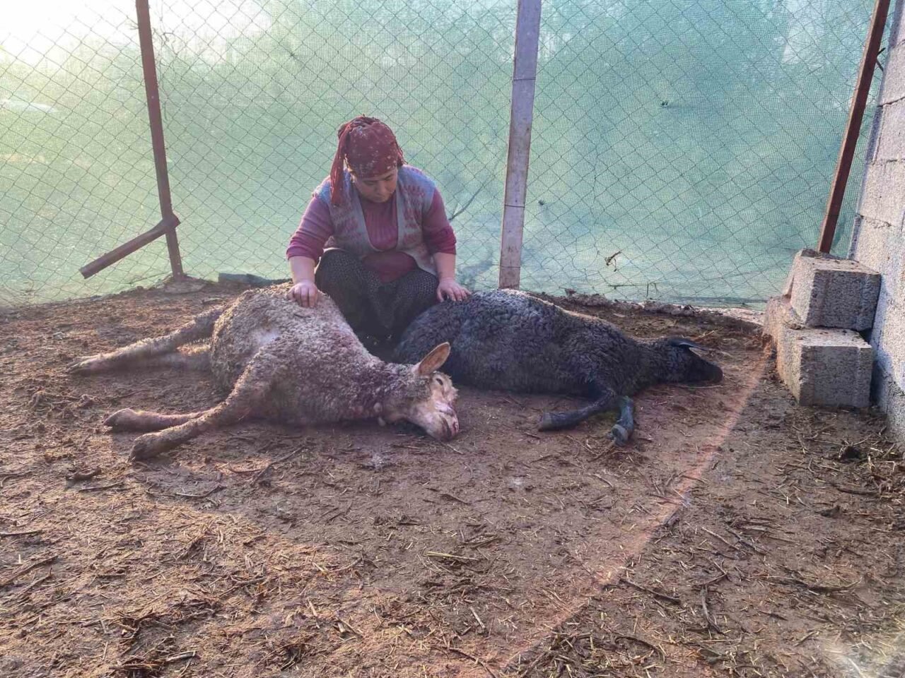 Sabah ahıra geldiğinde hayvanları ölü bir şekilde bulduğunu söyleyen anne Emine İren, “Bir hamile koyunum vardı onları büyütüp okuyan 2 kızım var onlara okul harçlığı yapıp onları okutacaktım ama olmadı ”diye konuştu.