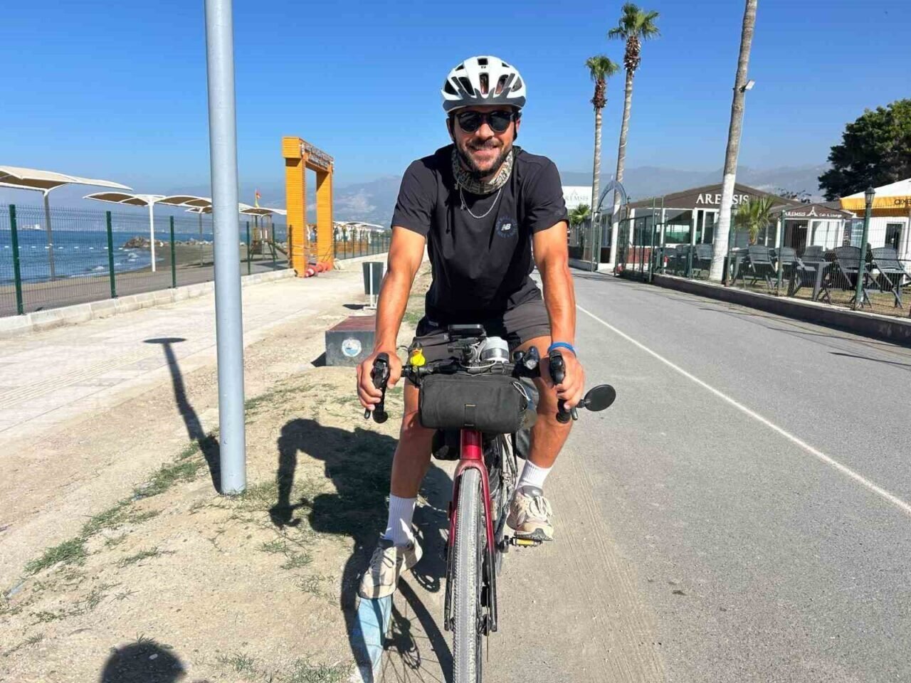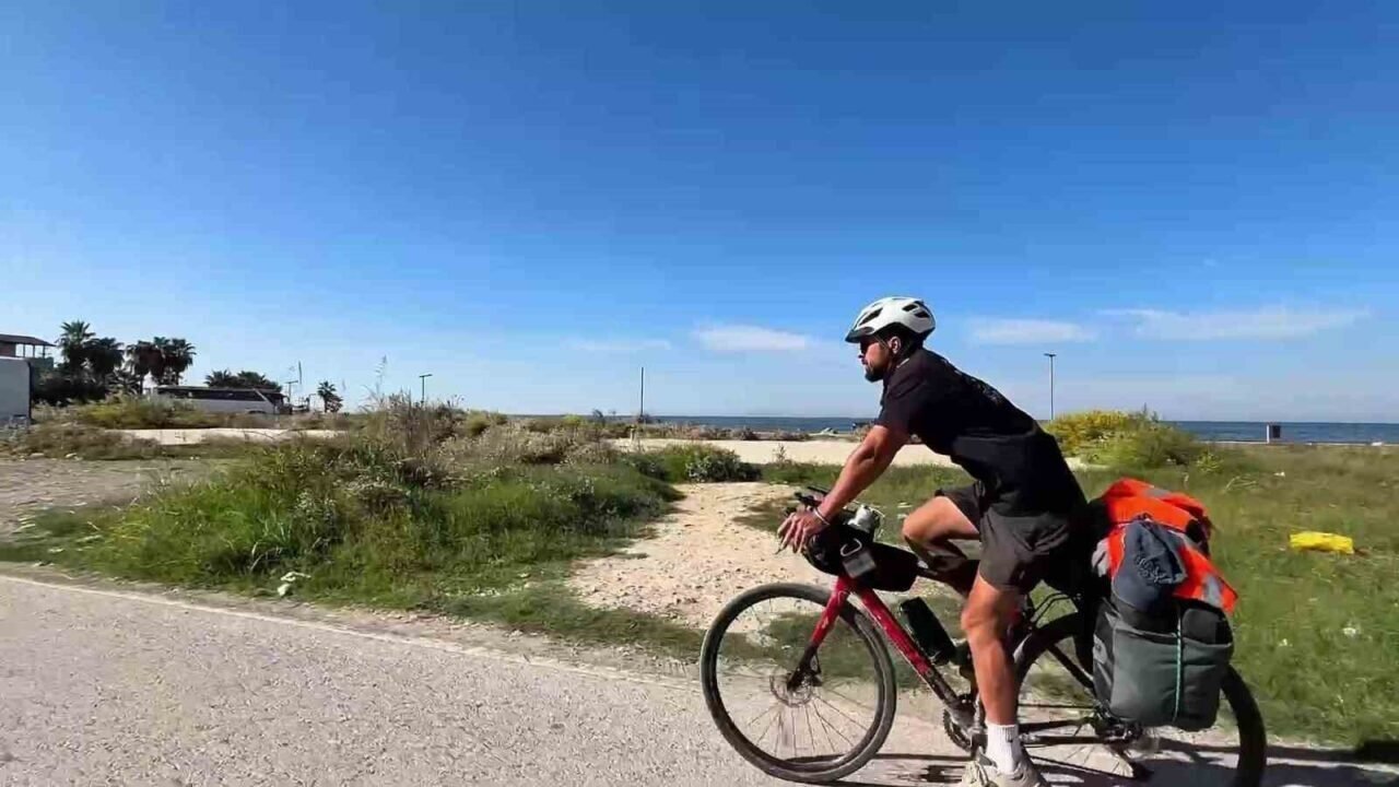 Bisiklet turunda 3 buçuk ayda 2 bin 500 kilometreyi pedallayan genç, Türkiye’nin en güneyine ulaştı