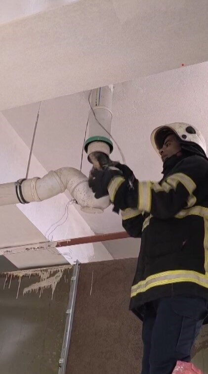 Reyhanlı ilçesi Yenişehir Mahallesi’ndeki öğrenci yurdunda boru içinden gelen miyavlama sesini duyan vatandaşlar durumu itfaiye ekiplerine bildirdi. İhbar üzerine olay yerine Hatay Büyükşehir Belediyesi itfaiye ekipleri sevk edildi. Kısa sürede bölgeye gelen ekiplerin müdahalesiyle boru içinde mahsur kalan yavru kedi kurtarıldı. Kurtarılan yavru kedi, beslenme ve sağlık kontrolünün ardından doğaya bırakıldı.