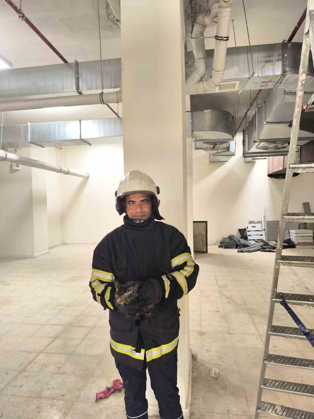 Boru içinde mahsur kalan yavru kedinin yardımına itfaiye ekipleri yetişti