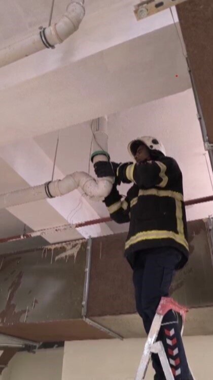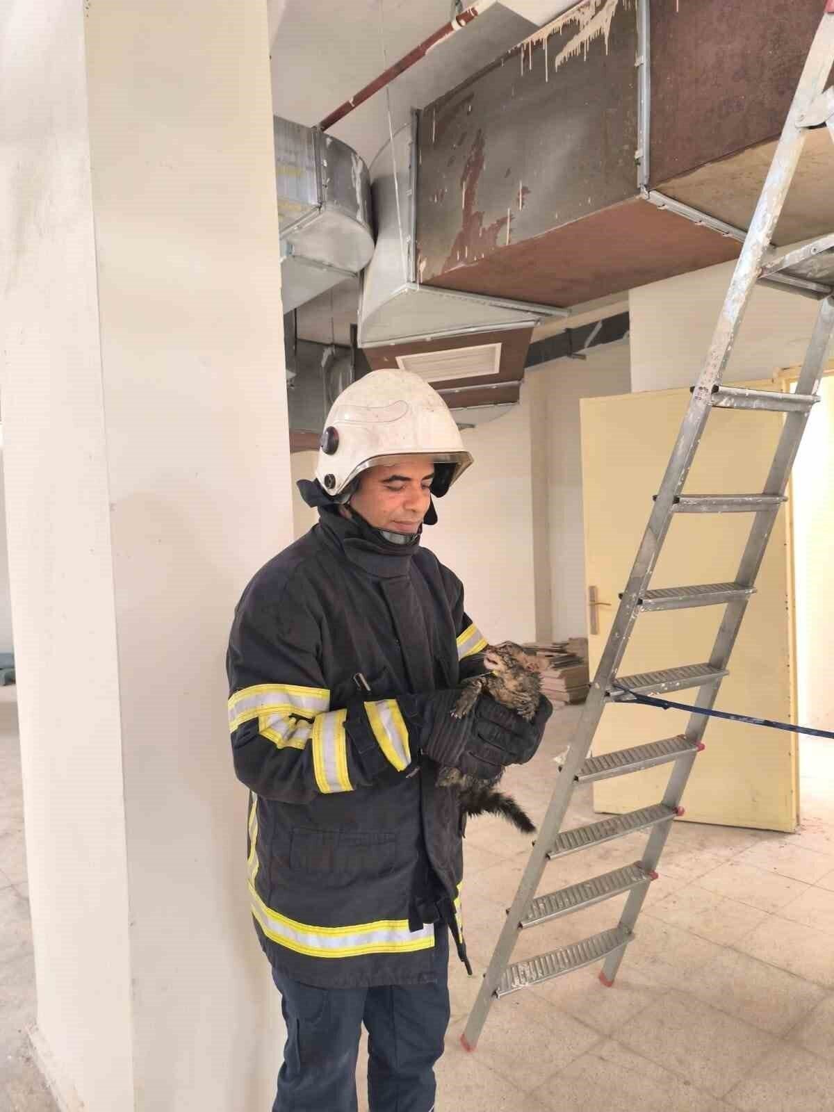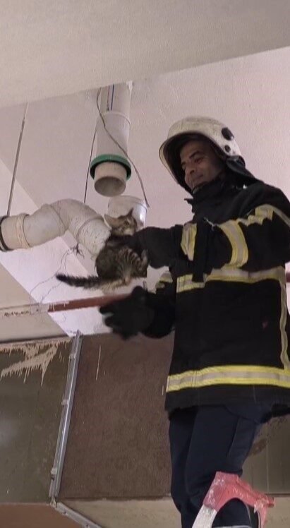 Reyhanlı ilçesi Yenişehir Mahallesi’ndeki öğrenci yurdunda boru içinden gelen miyavlama sesini duyan vatandaşlar durumu itfaiye ekiplerine bildirdi. İhbar üzerine olay yerine Hatay Büyükşehir Belediyesi itfaiye ekipleri sevk edildi. Kısa sürede bölgeye gelen ekiplerin müdahalesiyle boru içinde mahsur kalan yavru kedi kurtarıldı. Kurtarılan yavru kedi, beslenme ve sağlık kontrolünün ardından doğaya bırakıldı.