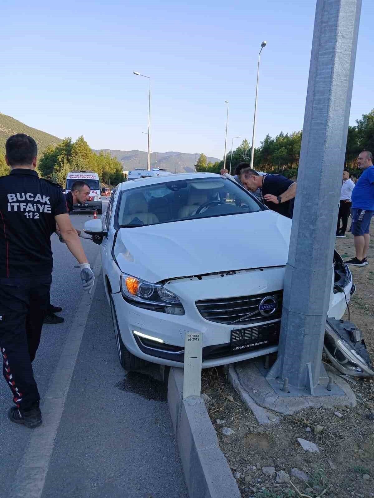 Kaza saat 18.50 sıralarında Bucak ilçesi Burdur-Antalya karayolu Oğuzhan Kent Ormanı Kavşağı’nda meydana geldi. Edinilen bilgilere göre Ali U. (60) idaresindeki 15 PH 550 plakalı Volvo marka otomobil ile Uğraş C.(53) idaresindeki 34 KMH 540 plakalı Fiat marka otomobil kavşakta çarpıştı. Kazada Ali U. ve Uğraş C. yaralandı. Çevredekilerin 112 Acil Çağrı Merkezi’ne ihbarı üzerine olay yerine sağlık, itfaiye, polis ve jandarma ekipleri sevk edildi. Vatandaşların yardımıyla araç içerisinden çıkarılan yaralılar sağlık ekiplerinin ilk müdahalesinin ardından ambulanslar ile Bucak Devlet Hastanesi’ne kaldırılarak tedavi altına alındı. Hastanede tedavi altına alınan yaralılardan Ali U.’nun hayati tehlikesinin bulunduğu öğrenilirken olayla ilgili inceleme başlatıldı.