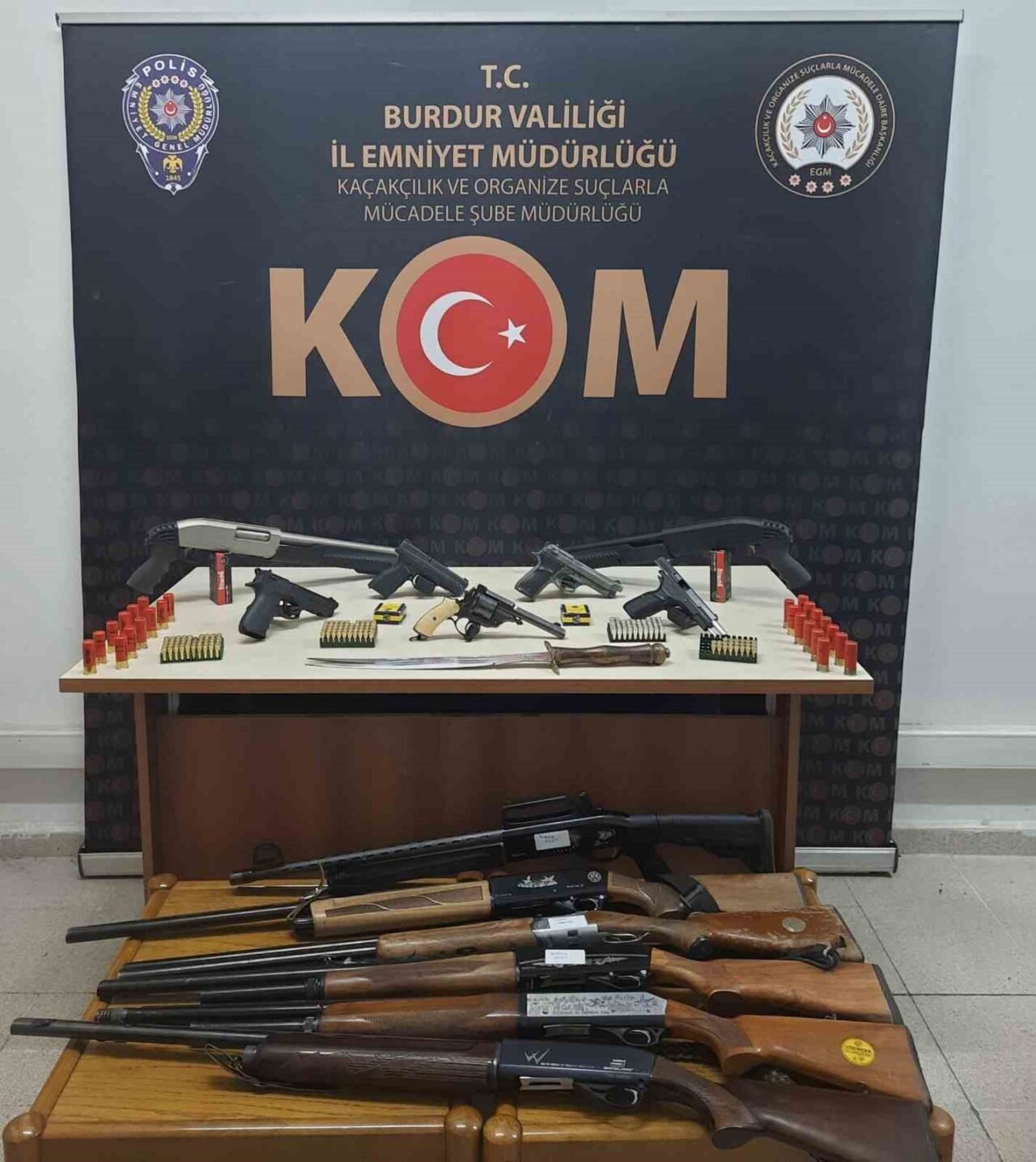Burdur İl Emniyet Müdürlüğü KOM Şube Müdürlüğü ekiplerince 4 Şubat’ta Burdur, Antalya ve Isparta illerinde eş zamanlı olarak 13 ikamet ve 2 iş yerine yapılan operasyonda 15 şüpheli gözaltına alınmıştı. Şüphelilerden 11’i işlemleri sonrasında serbest bırakılken, 3’ü hakkında yurt dışı çıkış yasağı verildi, 1 şüpheli ise tutuklanarak cezaevine gönderildi. Yapılan operasyonda 3 adet ruhsatsız tabanca, 2 adet kurusıkı tabanca, 10 adet şarjör, 8 adet ruhsatsız tüfek, 1 adet bıçak, 1 adet kılıç, 39 adet kuru sıkı fişeği, 266 adet tabanca fişeği, 297 adet av tüfeği kartuşu ele geçirildi.