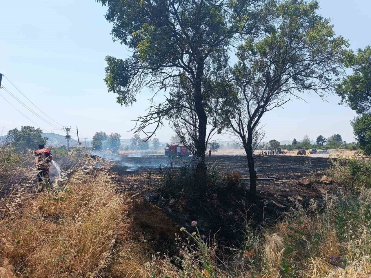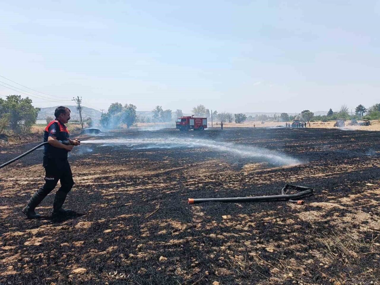 Yangında yaklaşık 10 dönüm anız alan zarar görürken, 3 büyük saman balyası ile 15 adet sulama borusunun da kullanılamaz hale geldiği bildirildi.