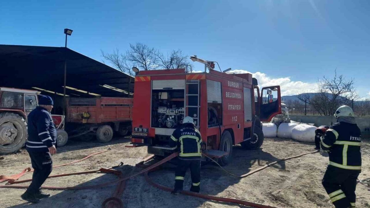 Burdur merkez Menderes Mahallesinde bulunan bir çiftlikte çıkan samanlık yangınında 100 saman balyası yanarak kullanılamaz hale geldi.