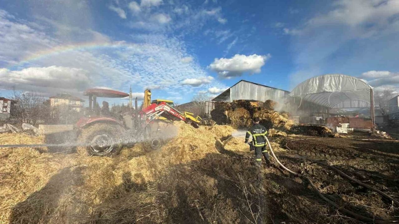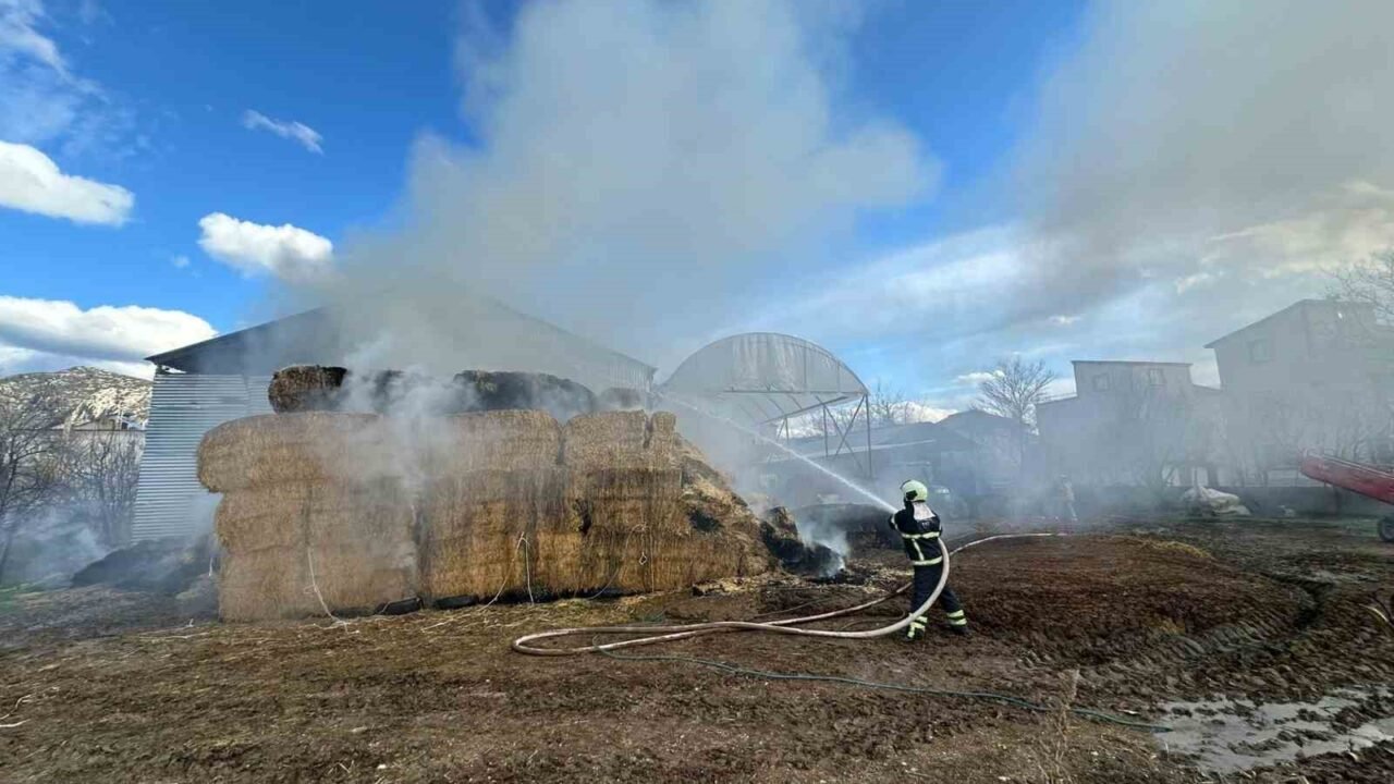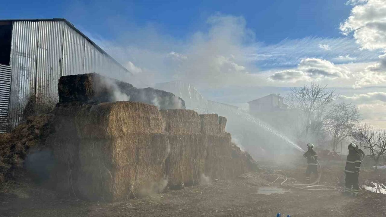 Bölgeye gelen itfaiye ekiplerinin müdahalesiyle yangın kontrol altına alınarak söndürülürken 80 adet saman balyası kül oldu.