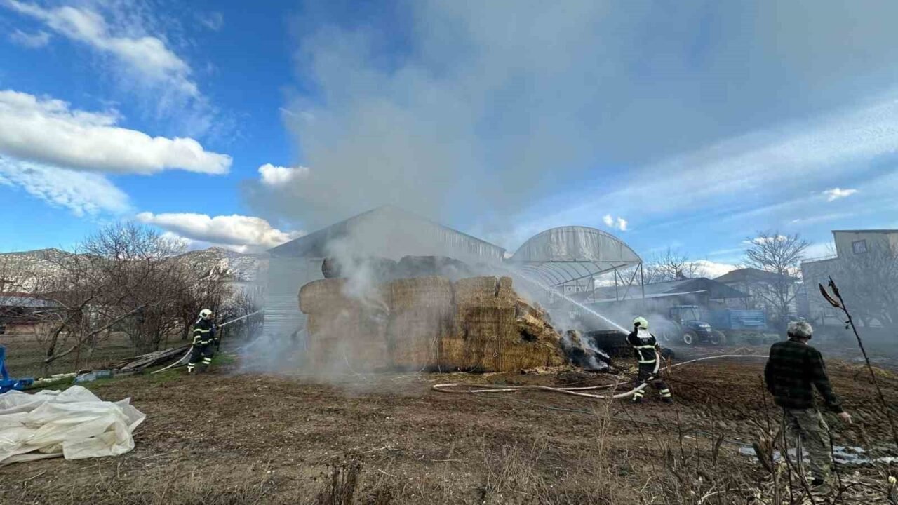 Burdur’da çıkan yangında 80 adet saman balyası kül oldu