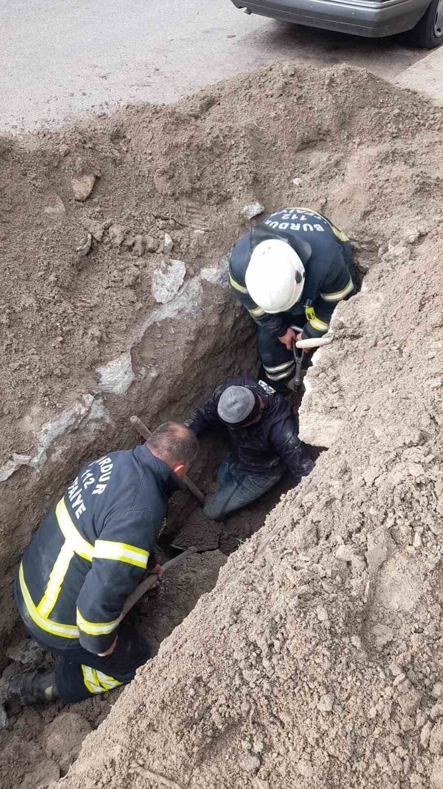 Burdur’da kazdığı çukurda bacakları toprak altında sıkışan işçiyi itfaiye kurtardı