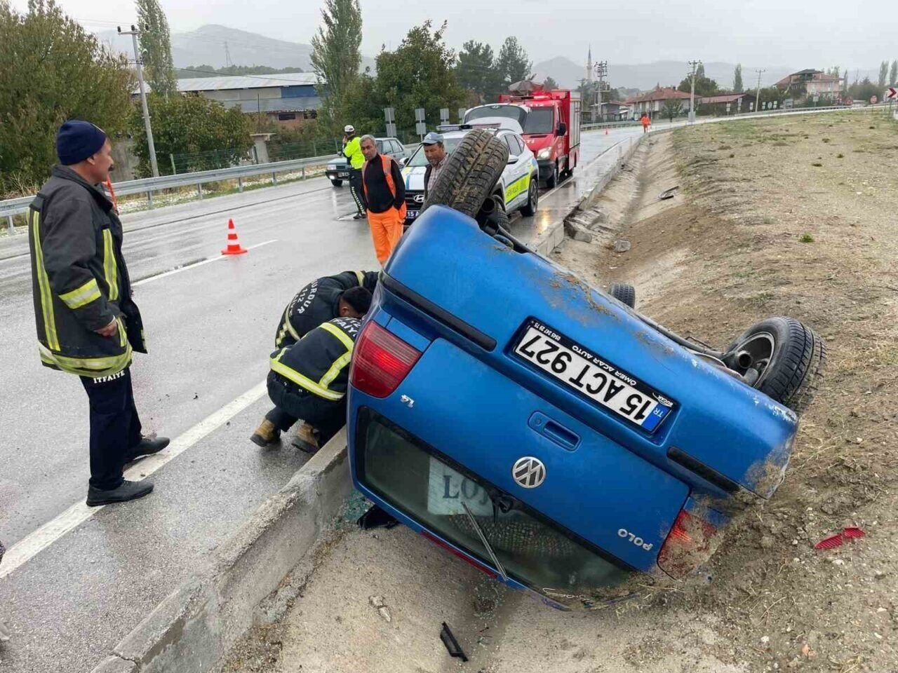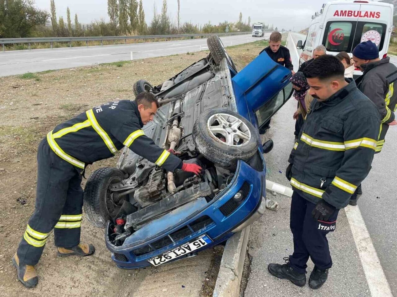 Burdur’da otomobil devrildi, sıkışan sürücüyü itfaiye kurtardı