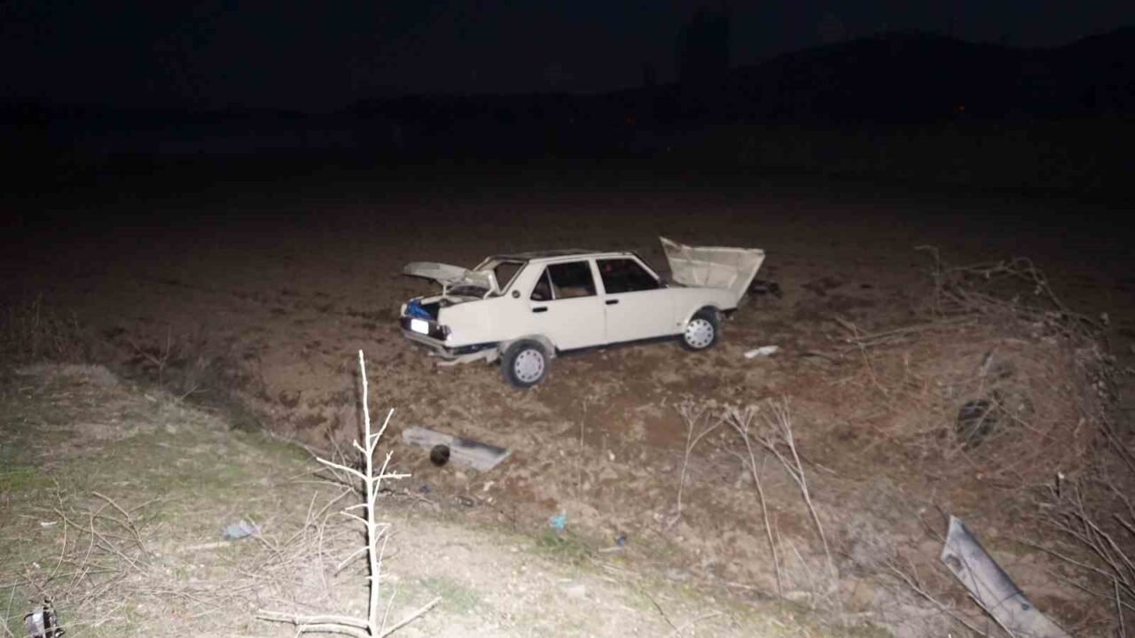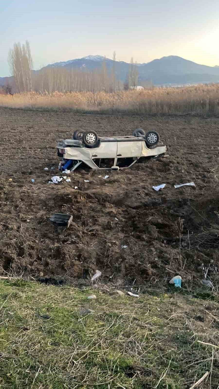 BURDUR’UN GÖLHİSAR İLÇESİNDE İKİ OTOMOBİLİN SOLLAMA SIRASINDA BİRBİRİNE SÜRTMESİ SONUCU KONTROLDEN ÇIKAN BİR ARAÇ TARLAYA UÇTU, 4 KİŞİ YARALANDI.