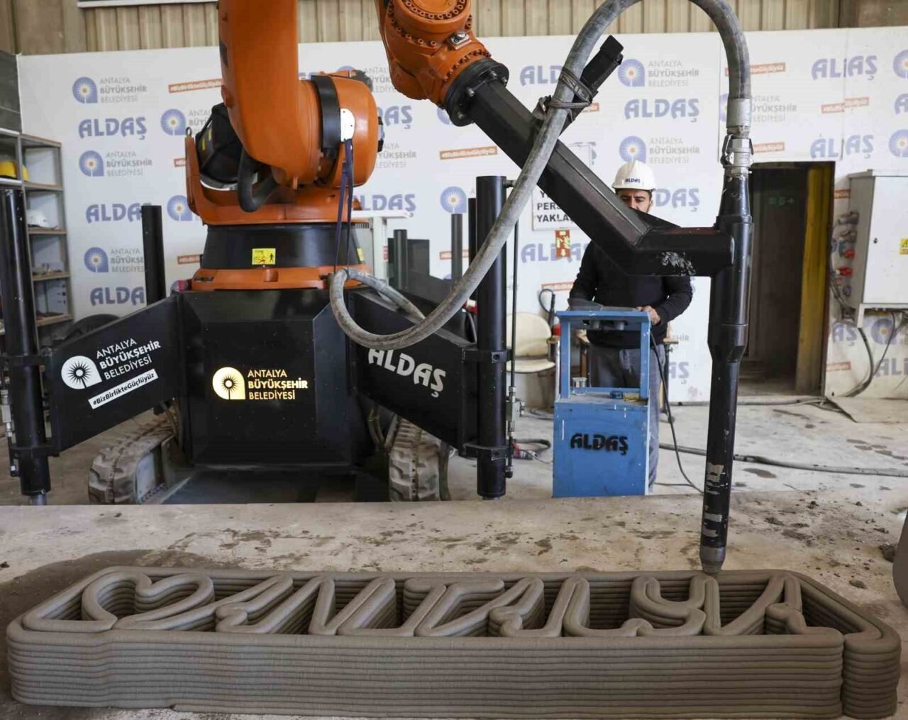 Antalya Büyükşehir Belediyesi şirketlerinden ALDAŞ tarafından işletilen Prefabrik Yapı Elemanları Üretim Tesisi’nde 3D yazıcı katmanlı beton üretim teknolojisiyle kent mobilyaları üretiliyor. Beton kent mobilyaları Antalya sokakları süslerken, birçok belediyeye de satış yapılıyor.