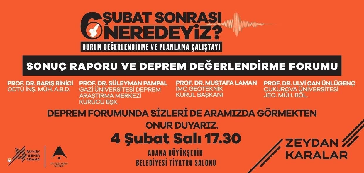 Çalıştayın moderasyonu, 6 Şubat 2023 depremleri sonrasında Adana’da teknik incelemelerde bulunan akademisyenler tarafından yürütülecek. Etkinlik, 4 Şubat Salı günü saat 17.30’da Adana Büyükşehir Belediyesi Tiyatro Salonu’nda gerçekleştirilecek.