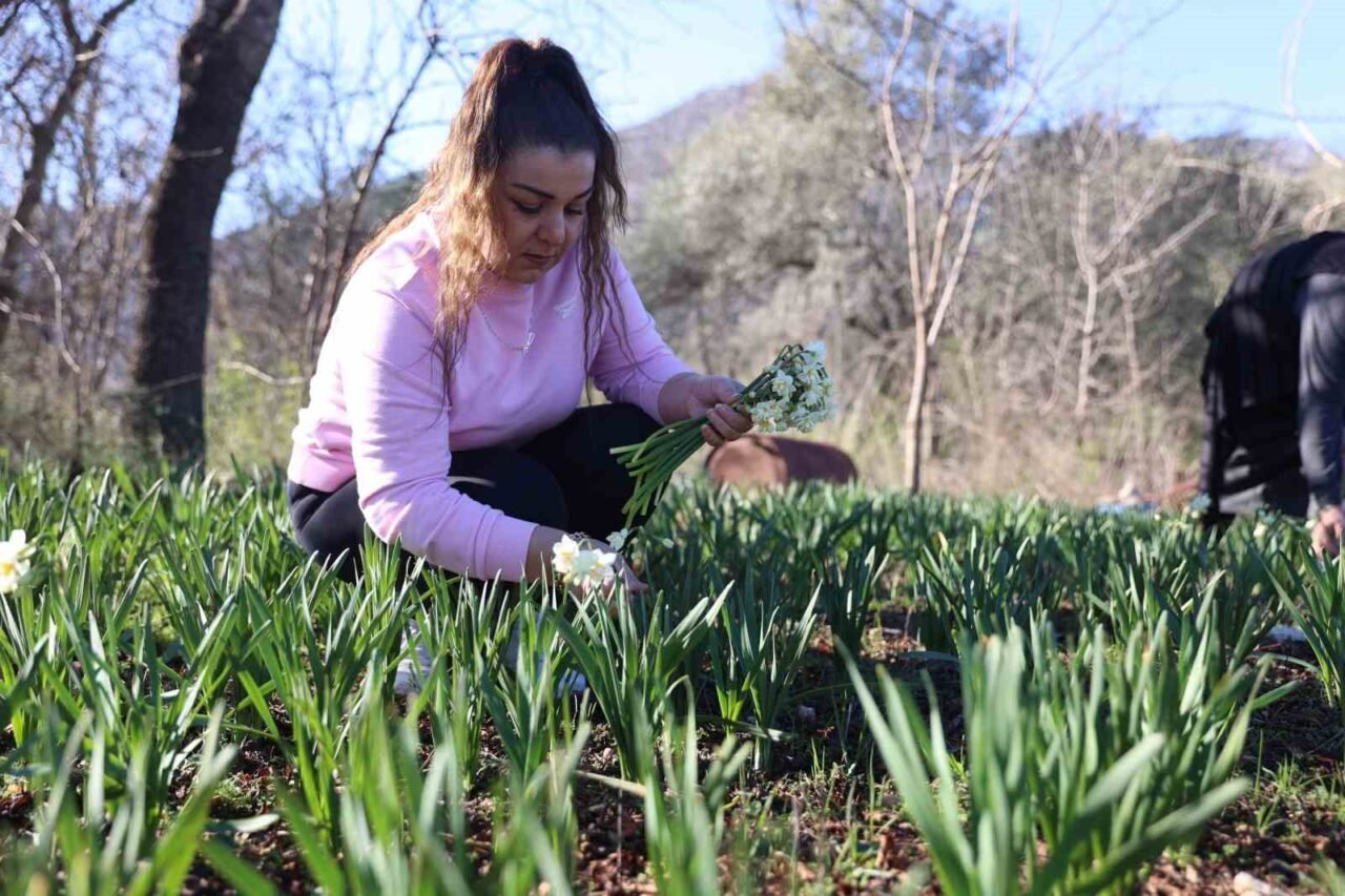 Antalya Büyükşehir Belediye Başkanı Muhittin Böcek’in yerelden kalkınma projeleri kapsamında kooperatiflerle yapılan iş birliğiyle Döşemealtı’nda ekimi yapılan nergis soğanlarının hasatı yapılıyor.