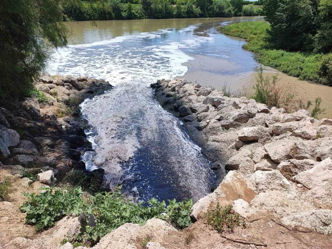 ÇUKUROVA’NIN VERİMLİ TOPRAKLARINA CAN SUYU OLAN CEYHAN NEHRİ KİRLİLİK NEDENİYLE KÖPÜRDÜ. BÖLGEDE OTURANLAR KÖTÜ KOKUDAN DURAMADIKLARINI BELİRTİP YETKİLİLERİN BİRAN ÖNCE ÇÖZÜM BULMASINI İSTEDİ.