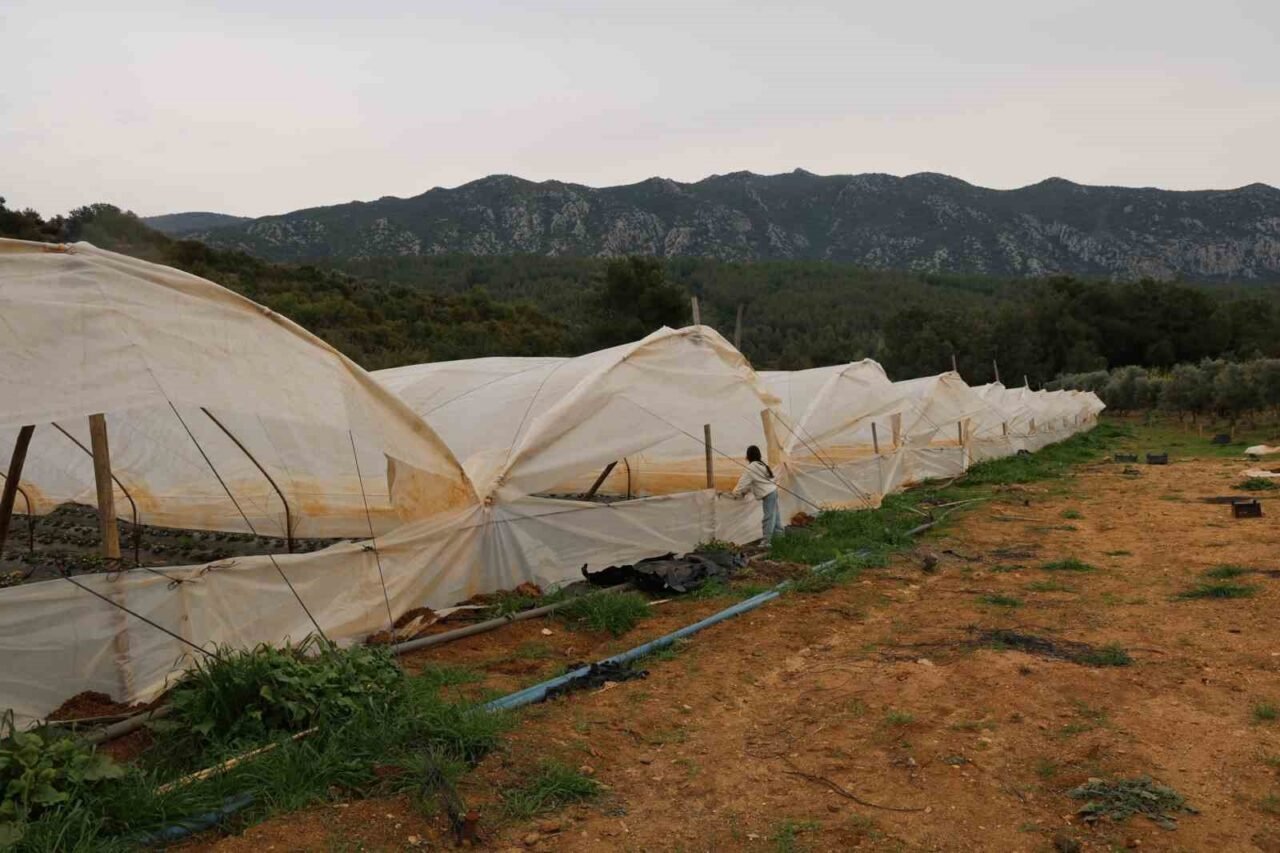 Üretim alanın yerleşim yerinden uzak olduğu için yabani hayvanlarında seraya zarar verdiğini aktaran Akçoban, “Domuzlar bahçeye dadandı. Çileği kökünden söküp zarar veriyordu. Ben de elektrikli tel ve ses bombalı önlem aldım. Bu önlemi aldığımdan bu yana domuz gelmiyor. Çileklerimize zarar veremiyorlar” diye konuştu.
