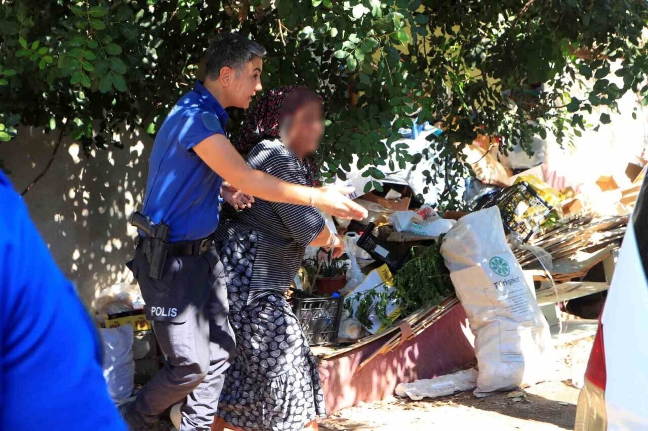 Zabıta ve polis ekiplerinin uzun uğraşları sonucu ikna edilen genç kadın, polis aracına bindirildiği sırada ise, “Hamileyim ben, eziyet etmeyin bana, hamileyim. Biz arabaya alışkın değiliz” diyerek ekiplere güçlük çıkardı. Güçlükle polis otosuna bindirilen Ayşe adlı genç kadın ve kardeşi bölgeden uzaklaştırıldı. Çevredeki vatandaşlar ise yaşananları evlerinin balkon ve pencerelerinden izledi. Genç kadın ve annesinin ikametten uzaklaştırılmasının ardından Kepez Belediyesi Temizlik İşleri Şube Müdürlüğü ekipleri evde temizlik çalışması yaptı. İkametten yaklaşık 6 kamyon çöp ve atık malzeme çıktı.