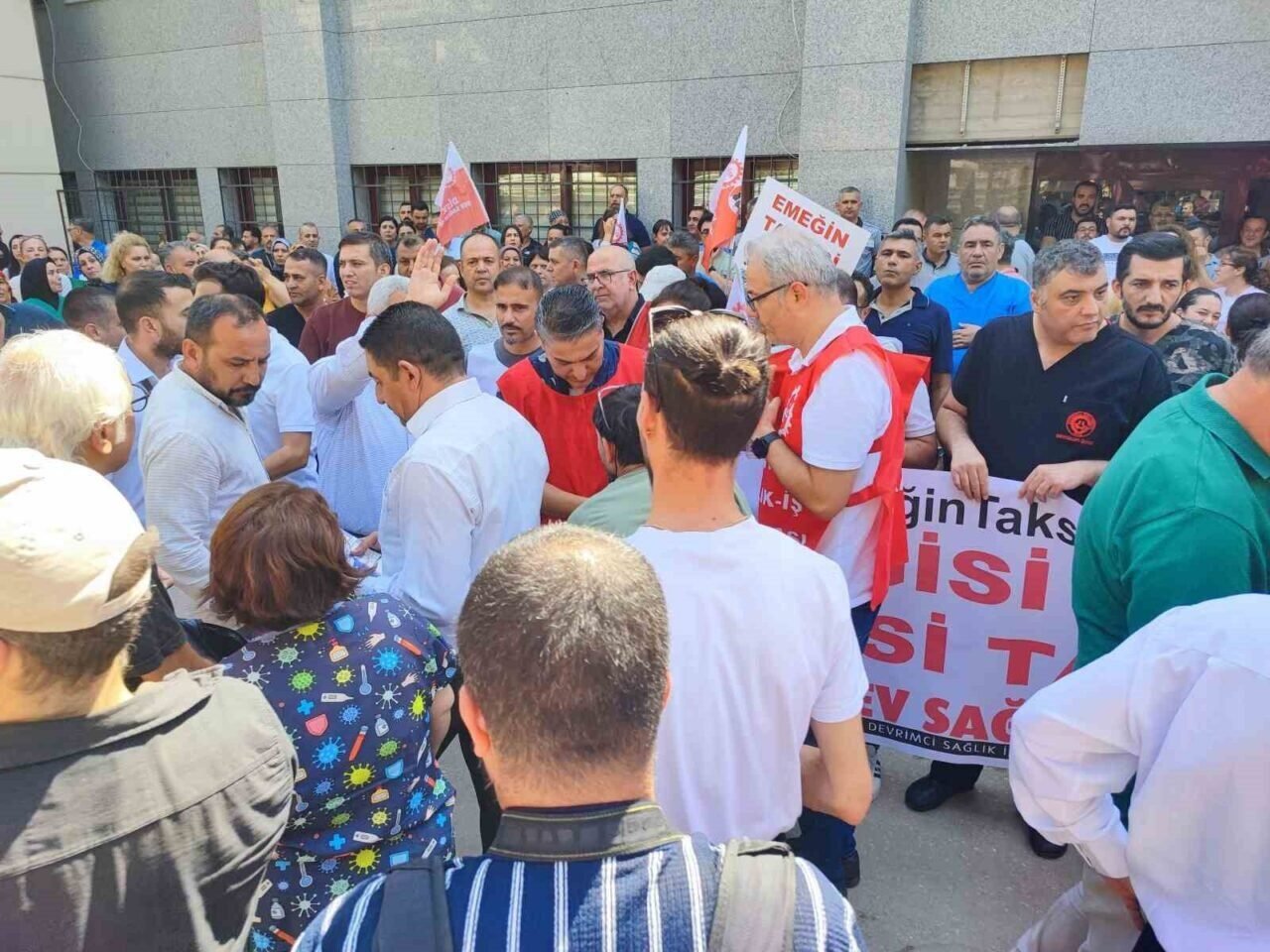Çalışanlardan Sibel Özdemir, “22 yıllık sağlık çalışanıyım. Hakkımın verilmesini istiyorum. İşimi severek yapıyorum ama bu tür olaylar oldukça istemeyerek geliyorum. Bizim toplu iş sözleşmemizin geriye dönük parasını bekliyorduk. Ona güvenerek borç yaptık. Şu an 120 bin liraya yakın alacağımız var. Sağlık çalışanı olarak bizlere herkesin ihtiyacı var, bizim de işe ihtiyacımız var. Hakkımızı almak istiyoruz” dedi.