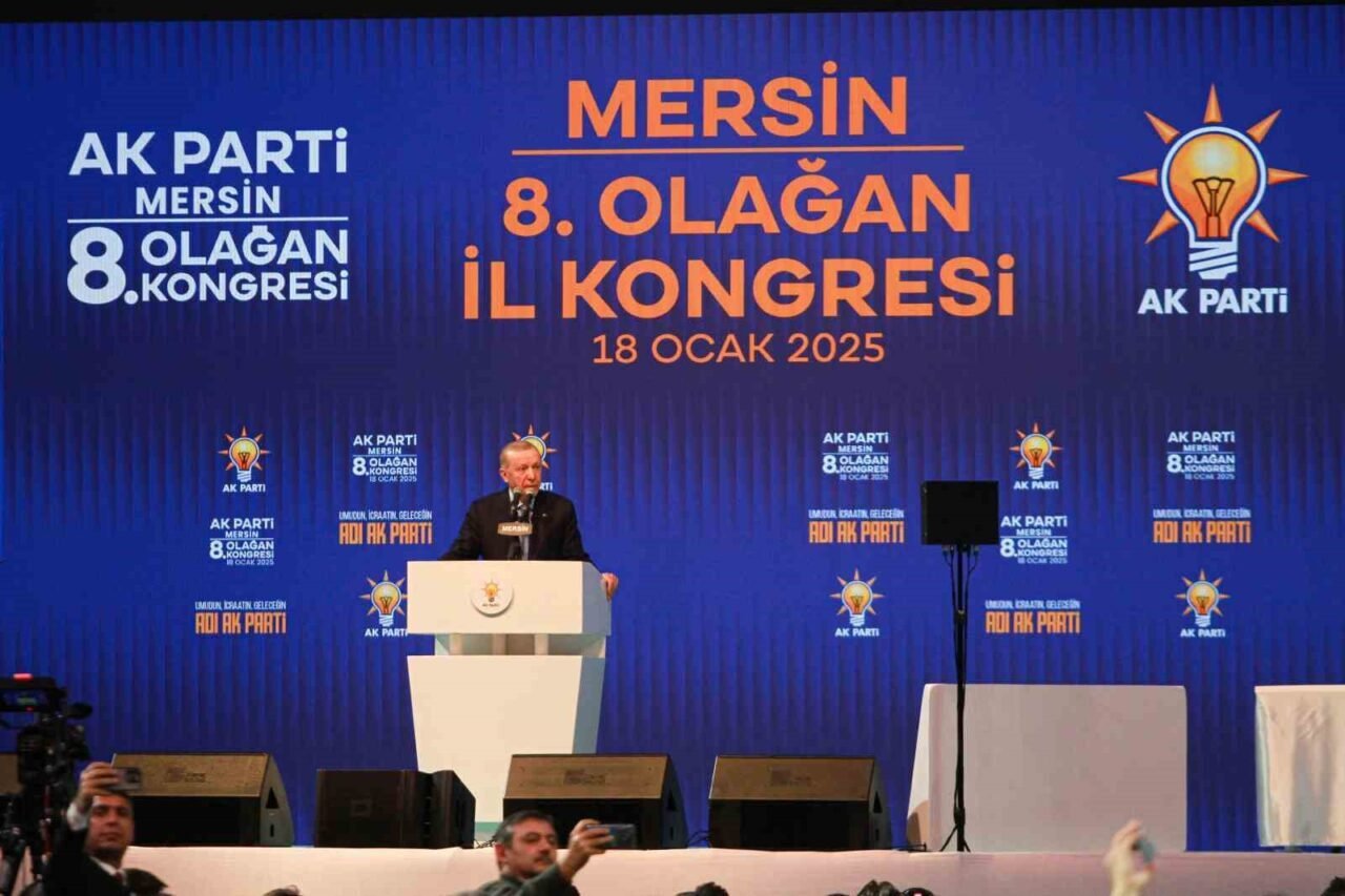 Cumhurbaşkanı Erdoğan, Mersin’de AK Parti Adana 8. Olağan İl Kongresi’ne katıldı. Servet Tazegül Spor Salonu’nda düzenlenen kongrede konuşan Cumhurbaşkanı Erdoğan, Mersinlilere teşekkür ederek, “Bu salonda AK Parti’nin eseri. Biz laf değil, eser üretiriz. Bu salonu da aynı şekilde bizler ürettik. Servet o zamanlar şampiyon olduğu için onun adını bu salona verdik. Sizlerin şahsında Mersin’in kıyısındaki, ovasındaki kardeşlerimin her birine selamlarını gönderiyorum. Kongremizin Mersin’e ve ülkemize hayırlı, uğurlu olmasını diliyorum. Mersin sadece şehirlerden bir şehir değildir. Mersin, bu ülkenin huzurunun güvencesidir. Mersin, birliğimizin, dirliğimizin sembolüdür. Toroslarda, Yörük çadırlarının üstünde tüten duman sönmedikçe milletimiz ve devletimiz istikbale güvenle bakmaya devam edecektir. Mersin, kimseyi sınıflandırmamıştır. Burası medeniyetler yatağıdır. Mersin’in bu göz alıcı tablosuna kimse halel getiremez. Bu şehir dünyaya kardeşlik hukuku dersi veriyor ve vermeye devam edecek” ifadelerini kullandı.