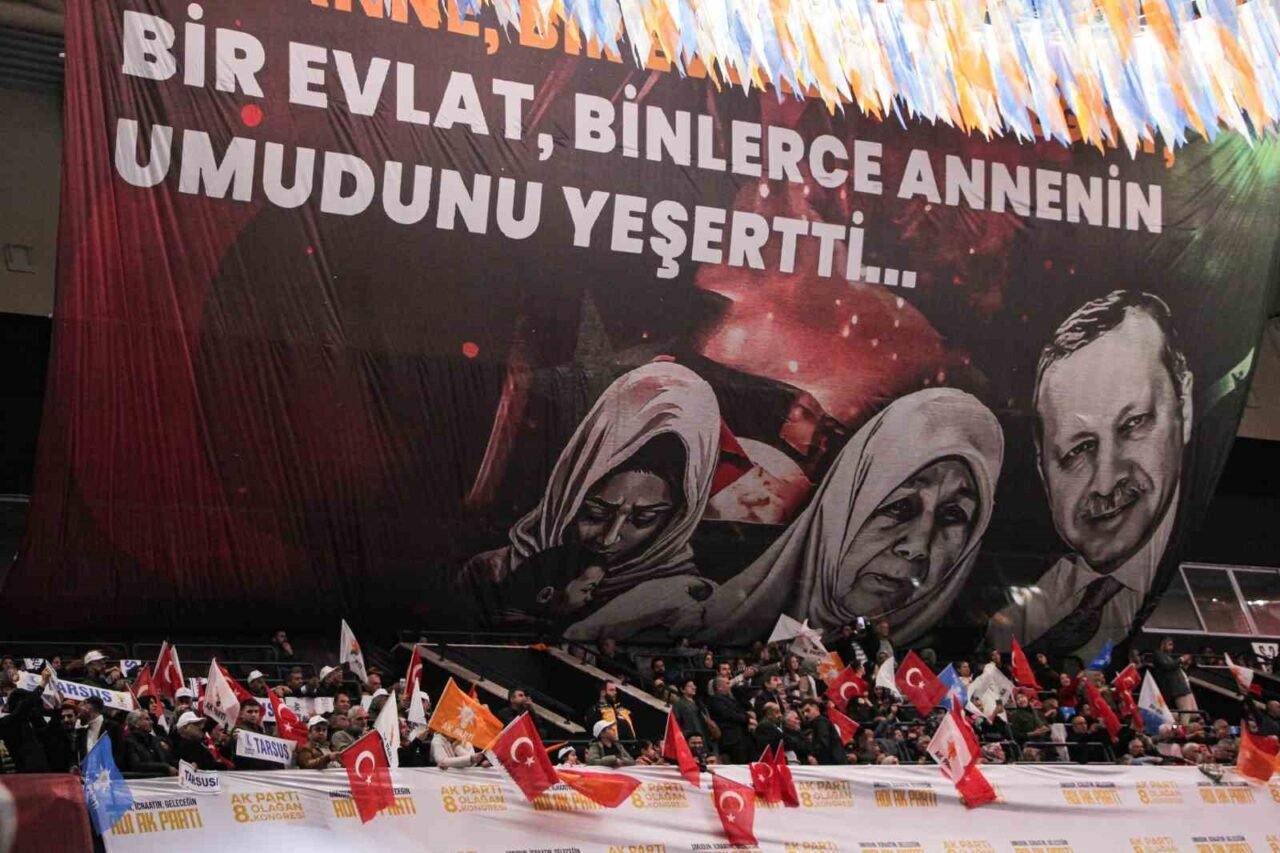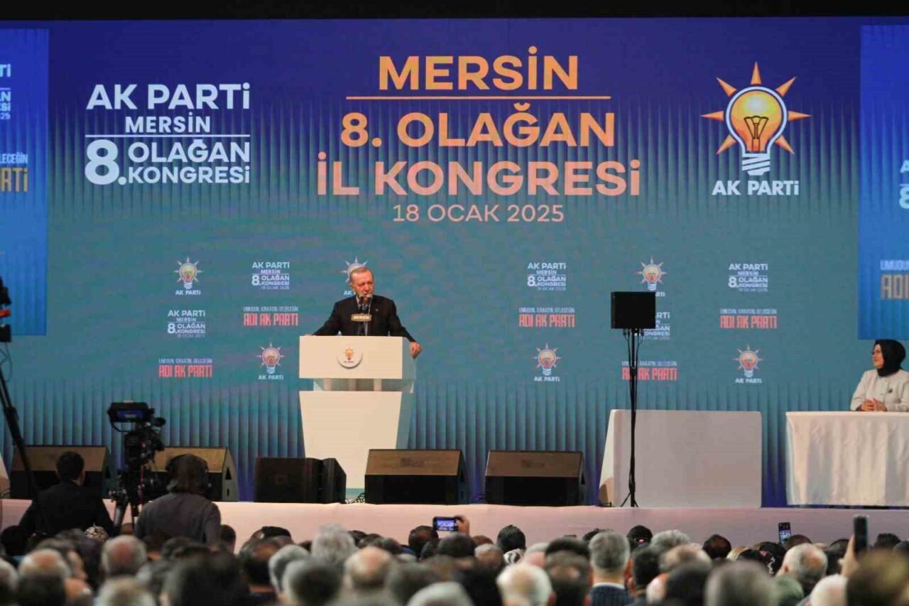 Cumhurbaşkanı Erdoğan, Mersin’de AK Parti Adana 8. Olağan İl Kongresi’ne katıldı. Servet Tazegül Spor Salonu’nda düzenlenen kongrede konuşan Cumhurbaşkanı Erdoğan, Mersinlilere teşekkür ederek, “Bu salonda AK Parti’nin eseri. Biz laf değil, eser üretiriz. Bu salonu da aynı şekilde bizler ürettik. Servet o zamanlar şampiyon olduğu için onun adını bu salona verdik. Sizlerin şahsında Mersin’in kıyısındaki, ovasındaki kardeşlerimin her birine selamlarını gönderiyorum. Kongremizin Mersin’e ve ülkemize hayırlı, uğurlu olmasını diliyorum. Mersin sadece şehirlerden bir şehir değildir. Mersin, bu ülkenin huzurunun güvencesidir. Mersin, birliğimizin, dirliğimizin sembolüdür. Toroslarda, Yörük çadırlarının üstünde tüten duman sönmedikçe milletimiz ve devletimiz istikbale güvenle bakmaya devam edecektir. Mersin, kimseyi sınıflandırmamıştır. Burası medeniyetler yatağıdır. Mersin’in bu göz alıcı tablosuna kimse halel getiremez. Bu şehir dünyaya kardeşlik hukuku dersi veriyor ve vermeye devam edecek” ifadelerini kullandı.
