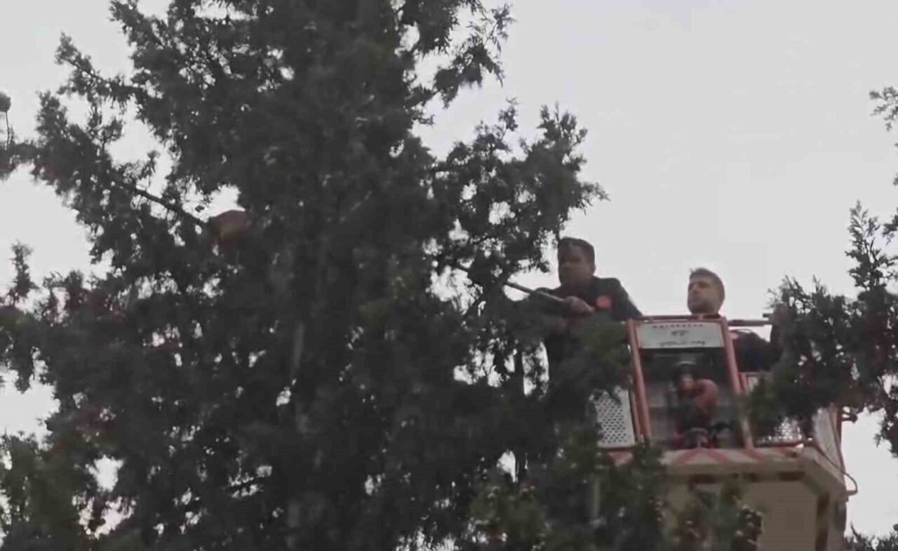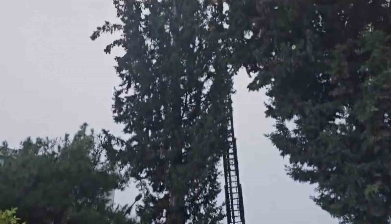 Adana’nın Kozan ilçesinde çıktığı ağaçta mahsur kalan kedi İtfaiye ve AKOM ekiplerince kurtarıldı.