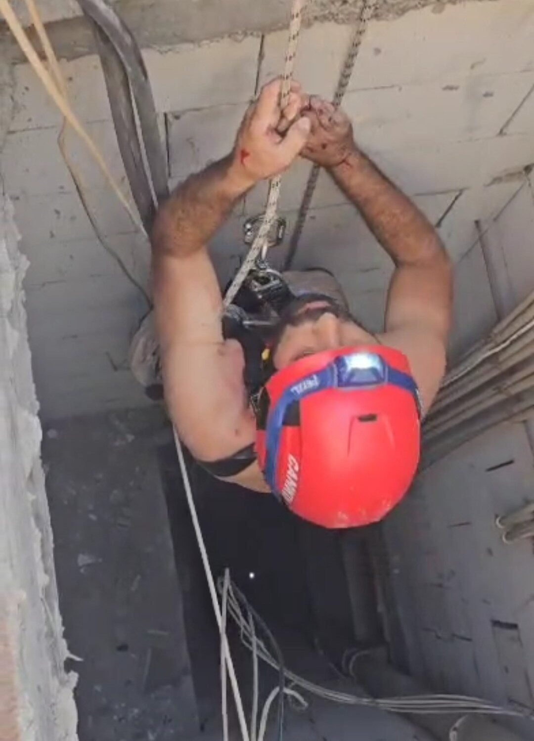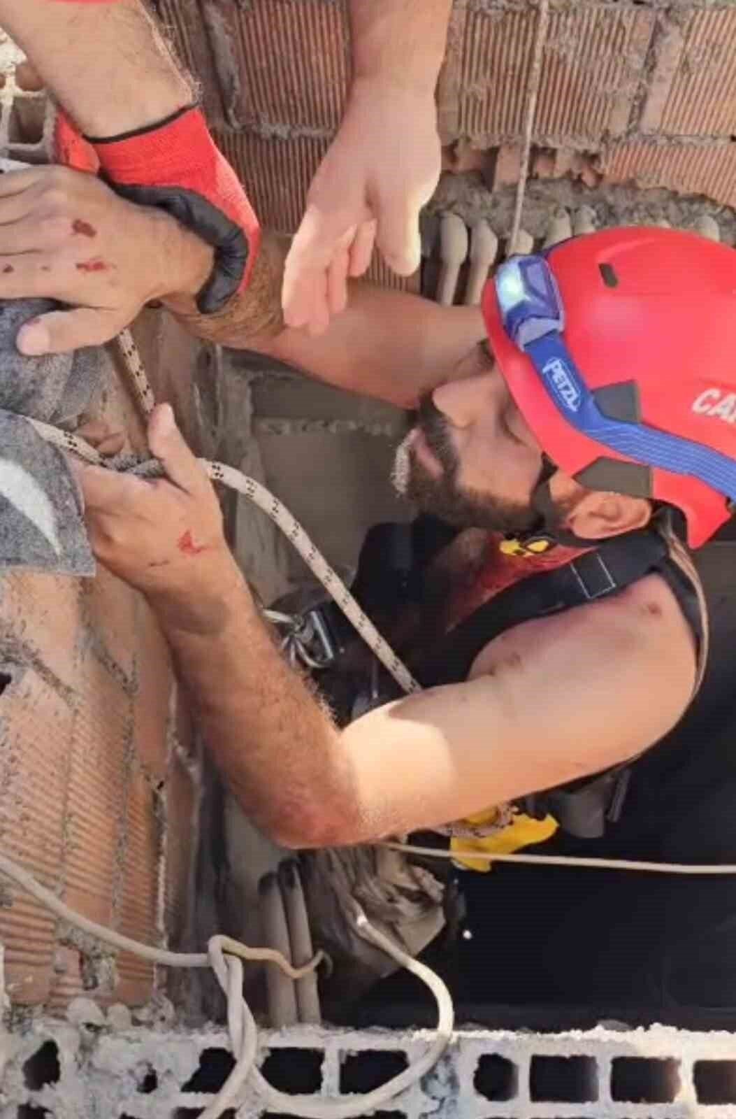 Damdan havalandırma boşluğuna düşen boyacıyı itfaiye ekipleri kurtardı