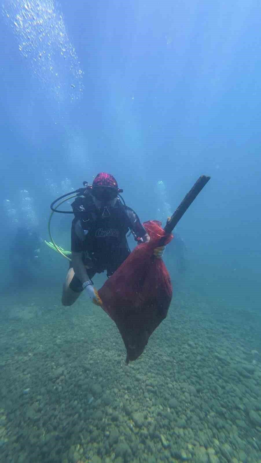Bir tarafta gönüllüler kıyıları temizlerlerken, 30 dalgıç da Konyaaltı Sahili’nde bir dalış gerçekleştirerek, dip temizliği yaptı. Dalgıçların 40 dakika süren dalışında dipten çıkan atıklar dikkat çekti. Denizin dibinden demir parçaları, araç lastiği, şezlong, plastik şişeler ve birçok tekne parçası çıktı. Etkinliğin sonunda ise Büyükşehir Belediyesi çocuklara ve gençlere yönelik ebru atölyesi düzenlendi. Kıyıdan topladıkları taşlar ile ebru çalışması yapan çocuklar keyifli bir zaman geçirdi.