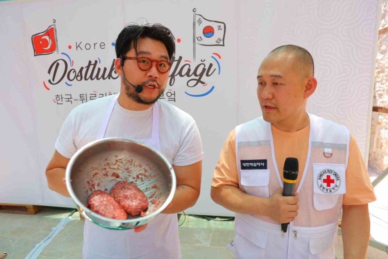 Etkinlikte konuşan Güney Koreli Şef Hyung Wang, “Bugün Korelilere Türk yemeği, Türklere ise Kore yemeği tanıtmaya çalışıyoruz. Buraya aslında depremzedeler için geldik. Onları daha çok teselli ve mutlu olmak için geldik. Aynı zamanda yemeklerimizi tattırmak için geldik. Kore yemeği yapıyoruz. Köfteden başladık Türkiye’deki köftelere çok benzer bir yemek” dedi.
