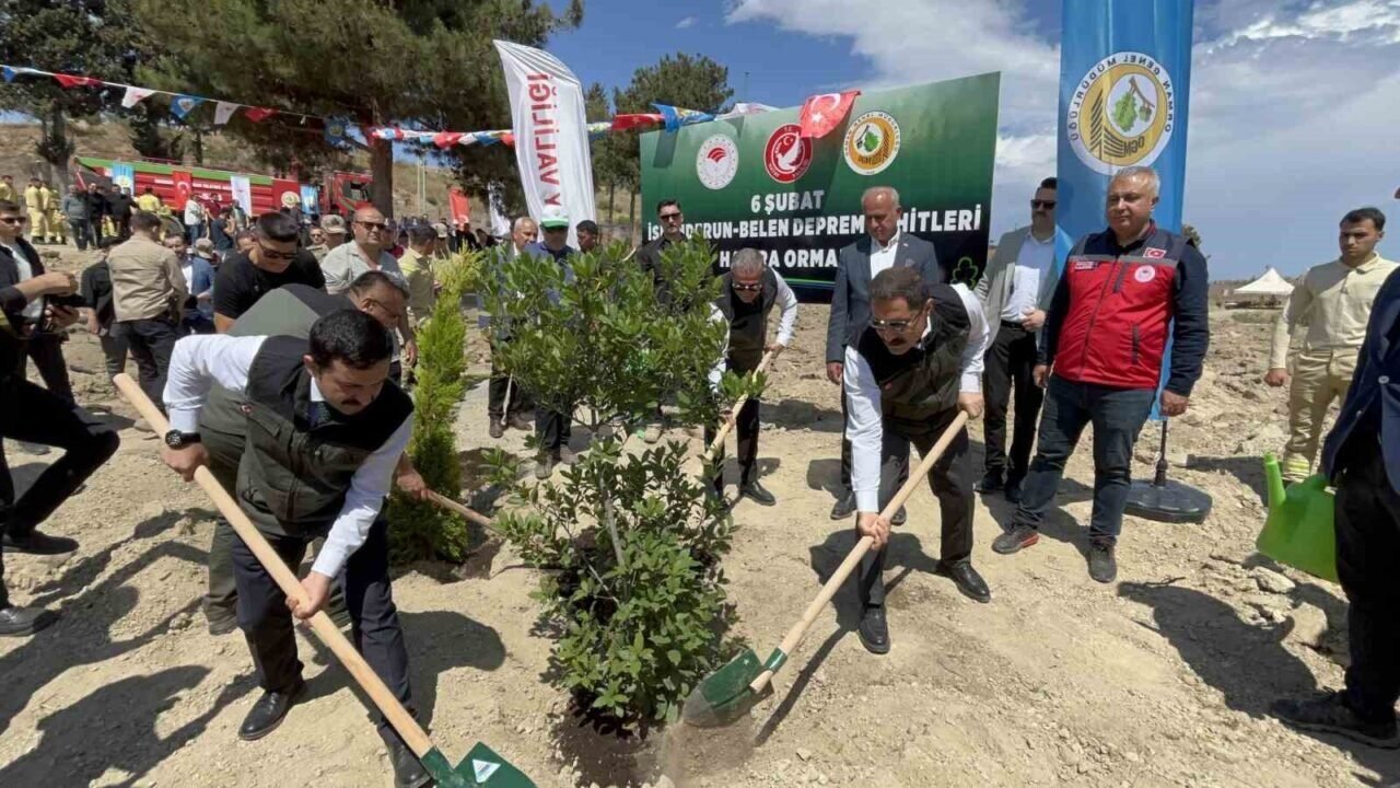 Kahramanmaraş merkezli 6 Şubat depremlerinde Hatay’da vefat edenlerin isimleri ve hatıraları yaşatılmaya devam ediyor. Hatay Valiliği’nce Belen ilçesi Fatih Mahallesi’ndeki İskenderun-Belen 6 Şubat Deprem Şehitleri Hatıra Ormanı’nda gerçekleştirilen etkinlikte, afette hayatını kaybedenlerin adlarına fidanlar toprakla buluşturuldu.