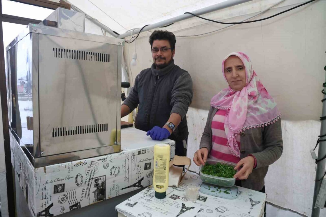 Depremden sonra eşiyle birlikte çadırda köfte yapan Şükran Kodalak ise, “Eşimle birlikte 16 yıldır evliyim. Bir kız ile bir oğlan çocuğum var. Köfteci Sadık olarak başladık. Burada köftecilik yapıyoruz. Depremden sonra kendi imkanlarımızla ayakta durmaya çalışıyoruz. Elhamdülillah işlerimiz iyi gidiyor. Eşimle beraber çalışıyorum. Eşime yardım ediyorum. Ben ve eşimin desteğiyle çocuklarımız için ayakta durmaya çalışıyoruz. Elimizden geleni yapıyoruz. Depremden sonra dışarıda kaldığımız için çadırımız oldu. Bir süre çadırda kaldıktan sonra evimize geçtik. Çadırımızı da iş yeri olarak kullandık” ifadelerini kullandı.