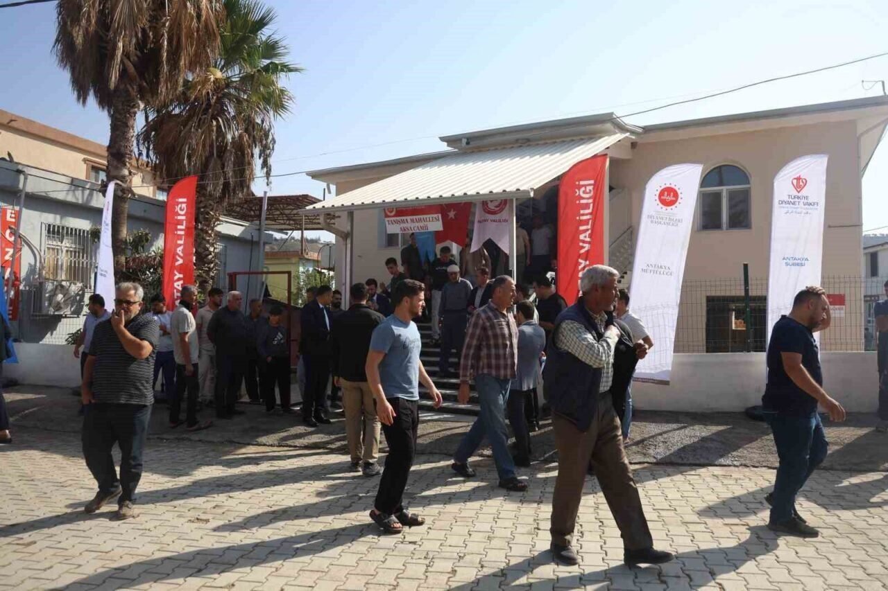 Hatay’da deprem sonrası inşa edilen 107’nci cami olan ‘Aksa Camii’ Vali Mustafa Masatlı’nın katılımıyla ibadete açıldı.