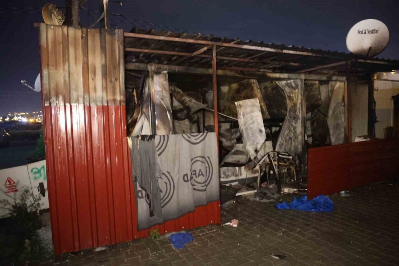 Hatay’da depremzede ailenin yaşadığı konteyner ev, alevlere teslim olarak yangında