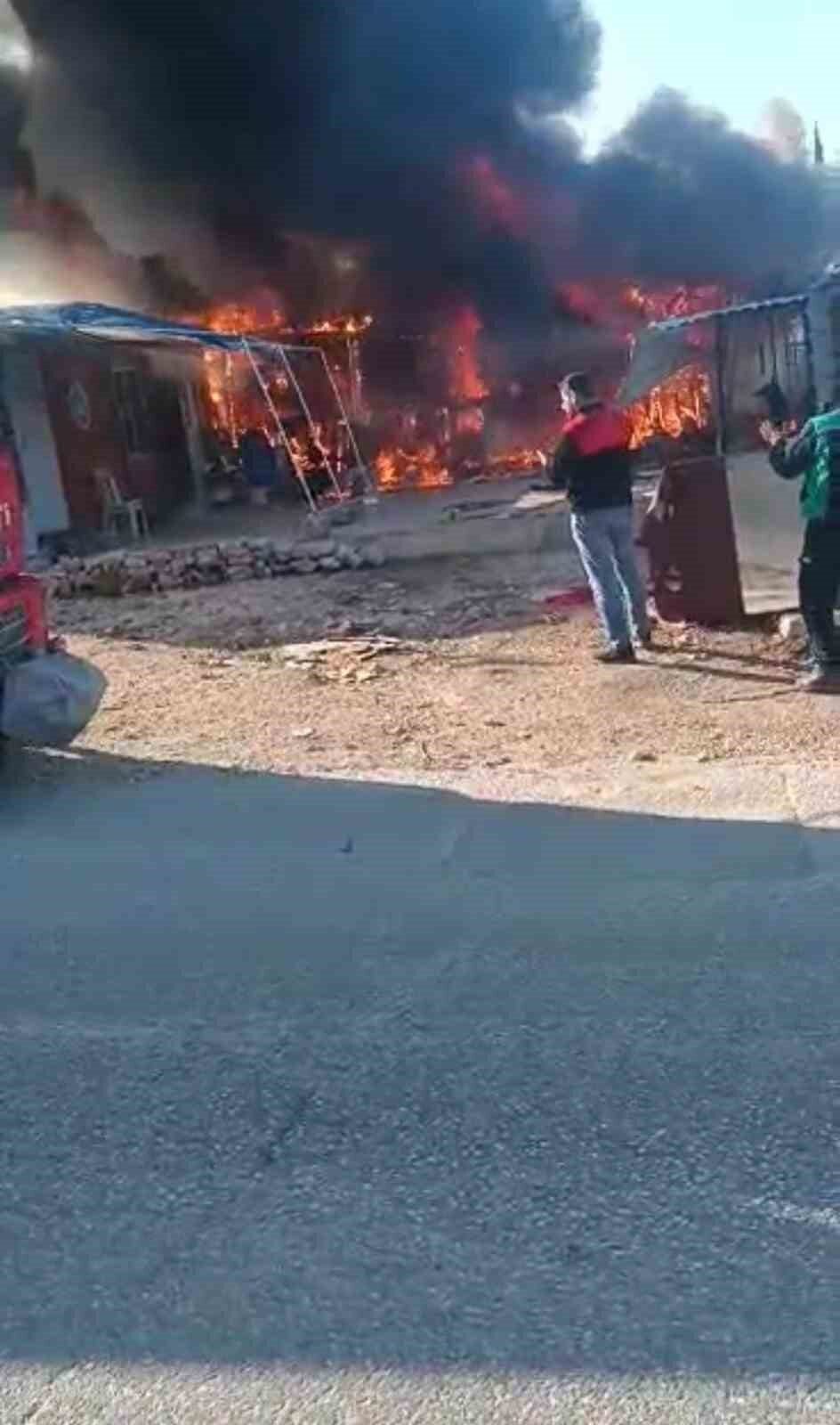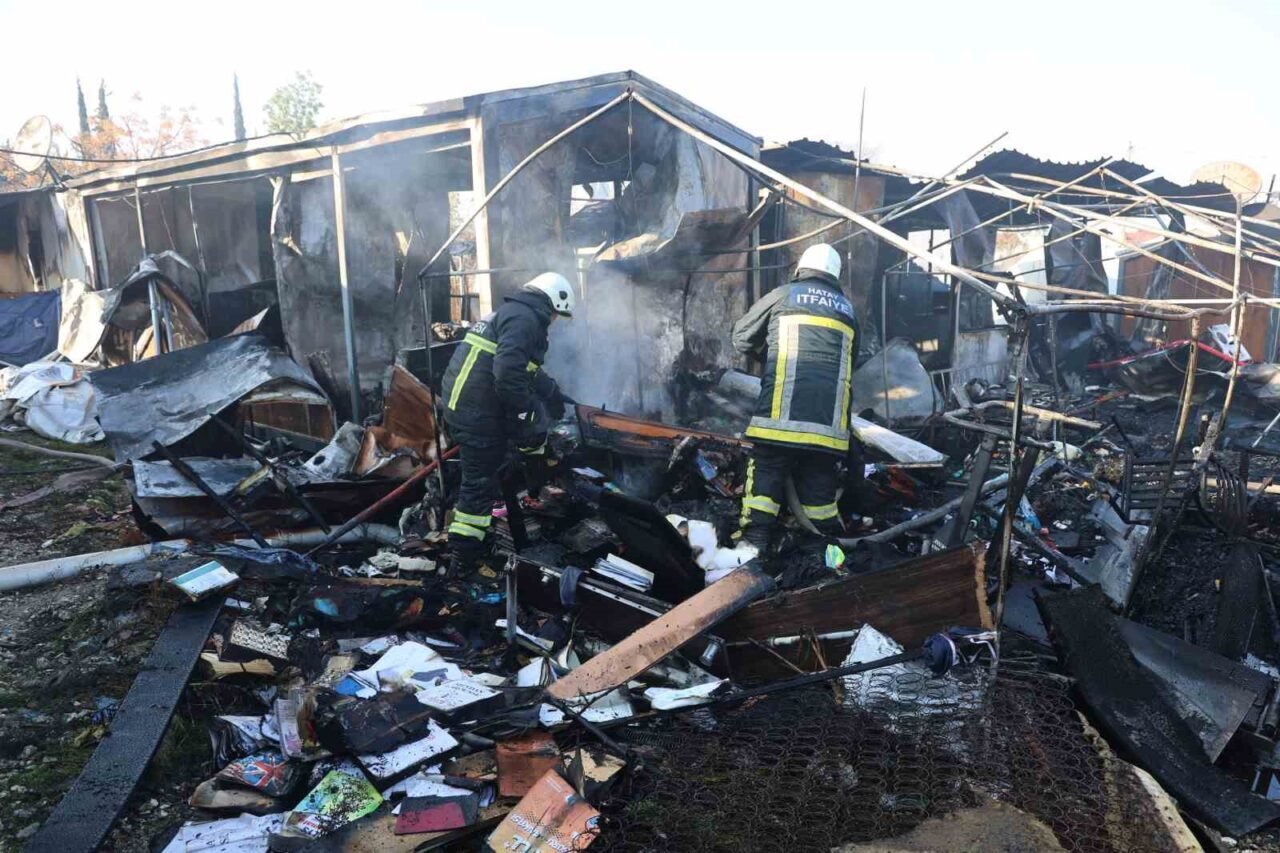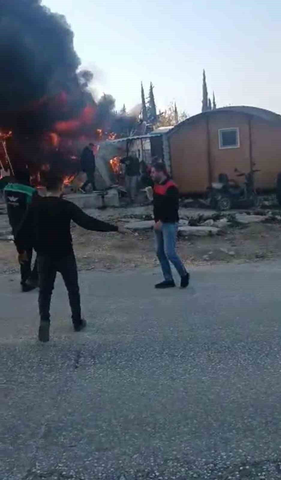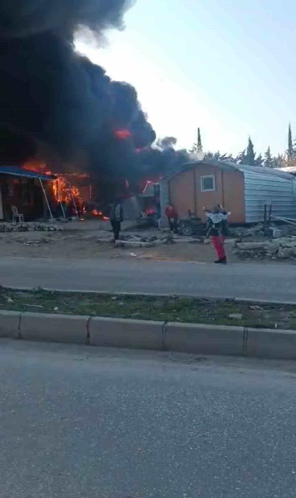 Hatay’ın Defne ilçesinde depremzedelerin kaldığı 4 konteyner yanarak kullanılamaz hale geldi.