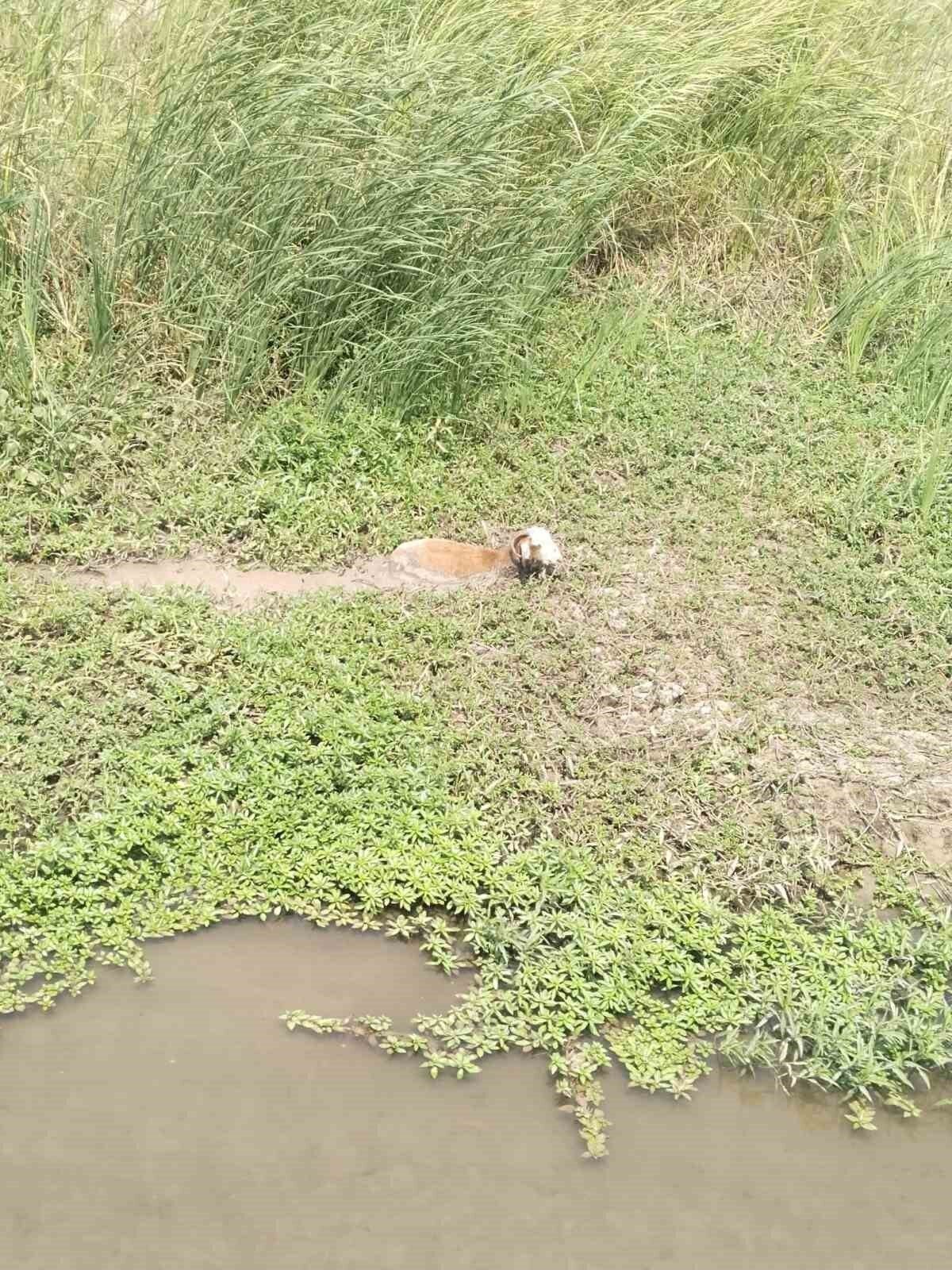 Hatay’da dereye düşerek çamur içerisinde mahsur kalan koyunu itfaiye ekipleri kurtardı.
