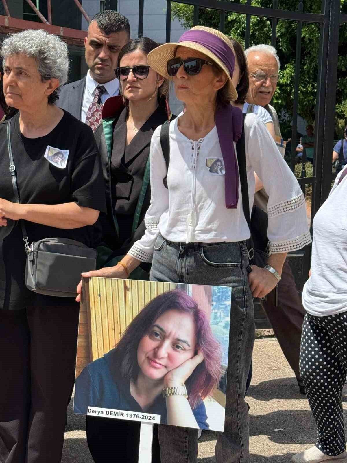 Yazlık sitede 2 çocuk annesi öğretmen Derya Demir’i öldürdüğü iddiasıyla yakalanarak tutuklanan Murat O.’nun yargılanmasına başlandı. Mersin Cumhuriyet Savcılığı tarafından sanık hakkında hazırlanan iddianamede, tutuklu sanık Murat O.’nun ’kadına karşı kasten öldürme’, ’başkasına ait banka veya kredi kartının izinsiz kullanılması suretiyle yarar sağlama’ ve ’kişinin ölmesinden yararlanarak hırsızlık’ suçlarından yargılanması talep edildi. Mersin 1. Ağır Ceza Mahkemesince kabul edilen iddianamenin ardından davanın ilk duruşması bugün görüldü. Tutuklu sanık Murat O. duruşmaya Antalya’nın Alanya ilçesindeki L Tipi Cezaevinden SEGBİS aracılığıyla katılırken, öldürülen Derya öğretmenin babası Mahmut Demir ile oğlu M.Y.Ö., taraf avukatları ve müşteki yakınları salonda hazır bulundu. Aile ve Sosyal Hizmetler Bakanlığı ve Mersin Barosu Kadın Hakları ve Çocuk Hakları Merkezi adına avukatlar da duruşmaya katıldı.
