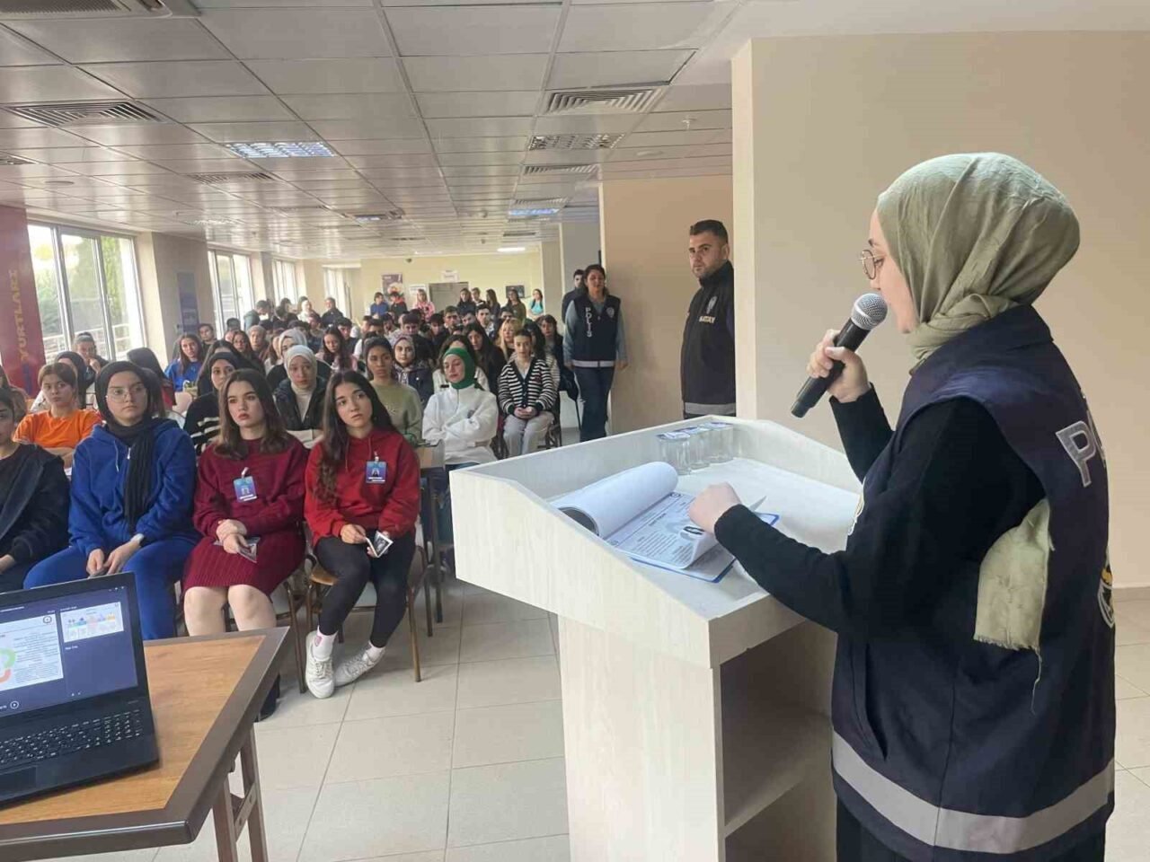 Hatay’da Dörtyol İlçe Emniyet Müdürü Dinsever Dinçer Kalkan, birim amirleri ile birlikte Dörtyol Meslek Yüksek Okulu Öğrencileri ile bir araya geldi. Gençlik ve Spor Bakanlığı Dörtyol Öğrenci Yurt müdürü Sibel Camuz Arğadal öncülüğünde Dörtyol Öğrenci Yurdunda gerçekleşen programda; suç ve suçlulara bilgilendirme başta olmak üzere gençlere narkotik ve aile içi şiddet konularında eğitim verildi. Emniyet […]