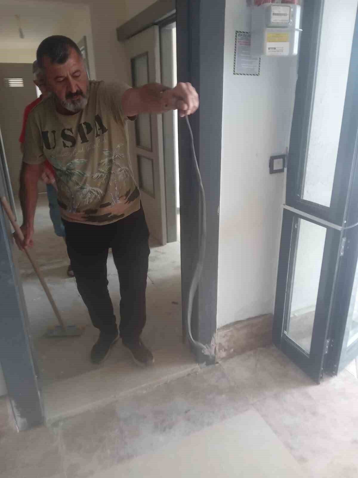 Hatay’da eve giren yılan vatandaşlar tarafından yakalanarak doğaya bırakıldı.